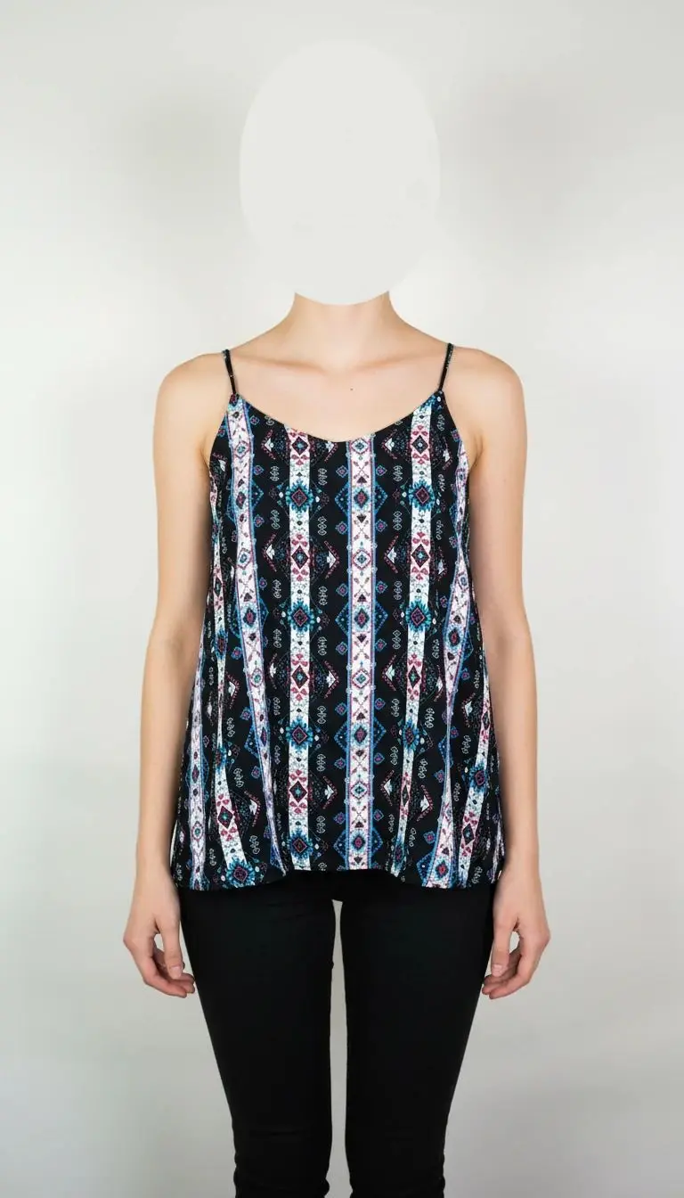 تاپ زنانه وارداتی استوک طرحدار بندی کد ۱۴۴۲ | سبک و خنک مناسب ۳۸–۴۰