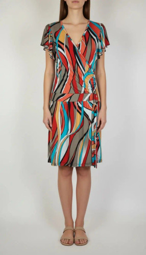 پیراهن زنانه استوک کد ۱۰۹۸ | مدل آستینکوتاه طرحدار رنگی با یقه هفت سایز ۳۸–۴۰ | زرماه گالری 🌈✨