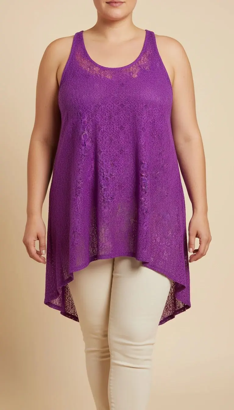 تاپ زنانه بنفش سایز بزرگ کد ۱۷۸۱ | فرم آزاد نامتقارن، سبک و خنک