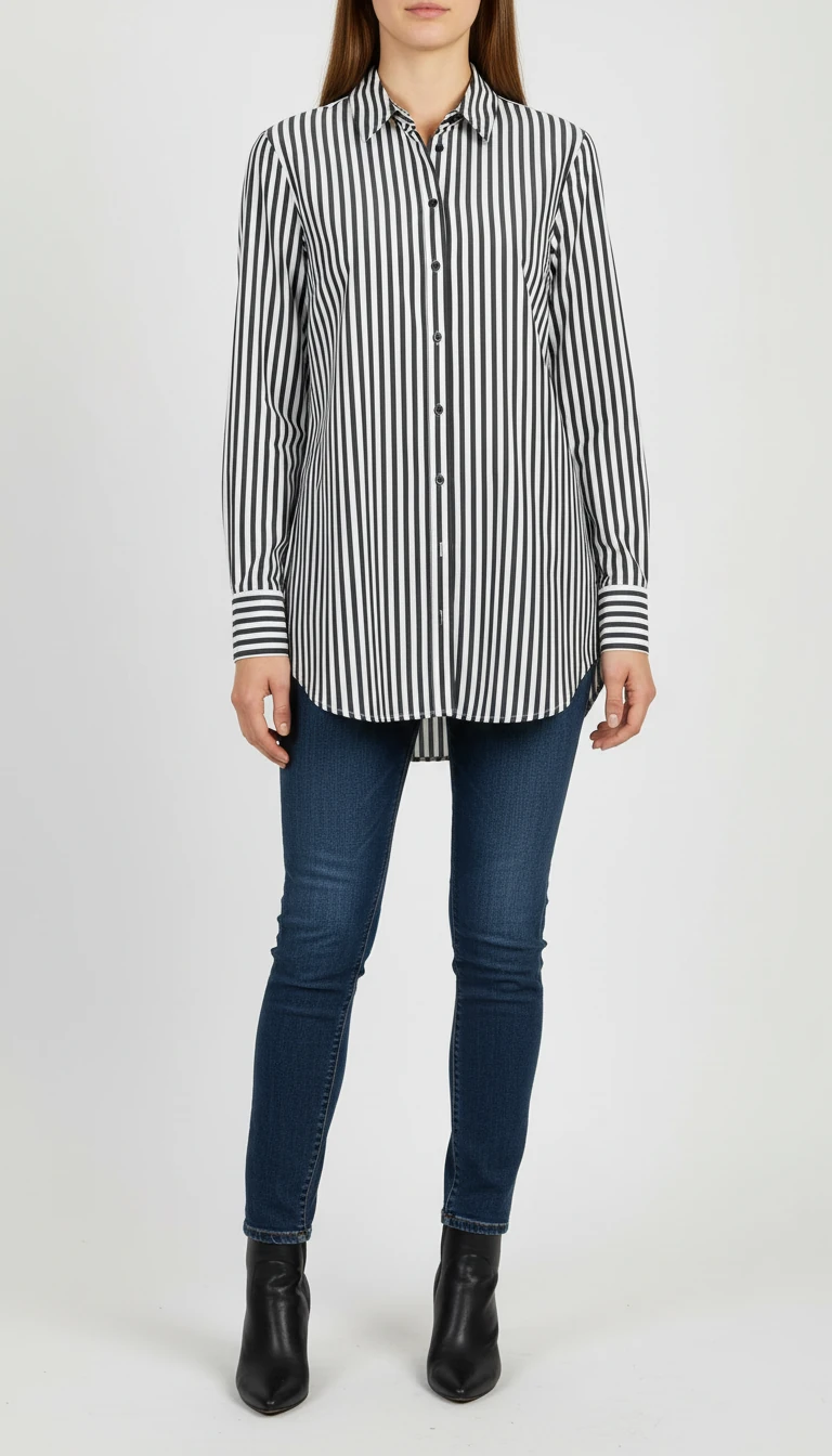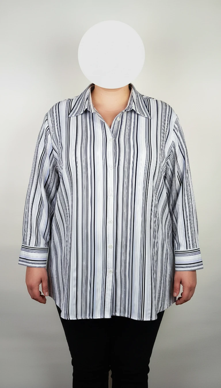 شومیز زنانه وارداتی استوک سایز بزرگ کد ۱۸۴۷ | راهراه، آستین بلند، مناسب ۴۸–۵۰