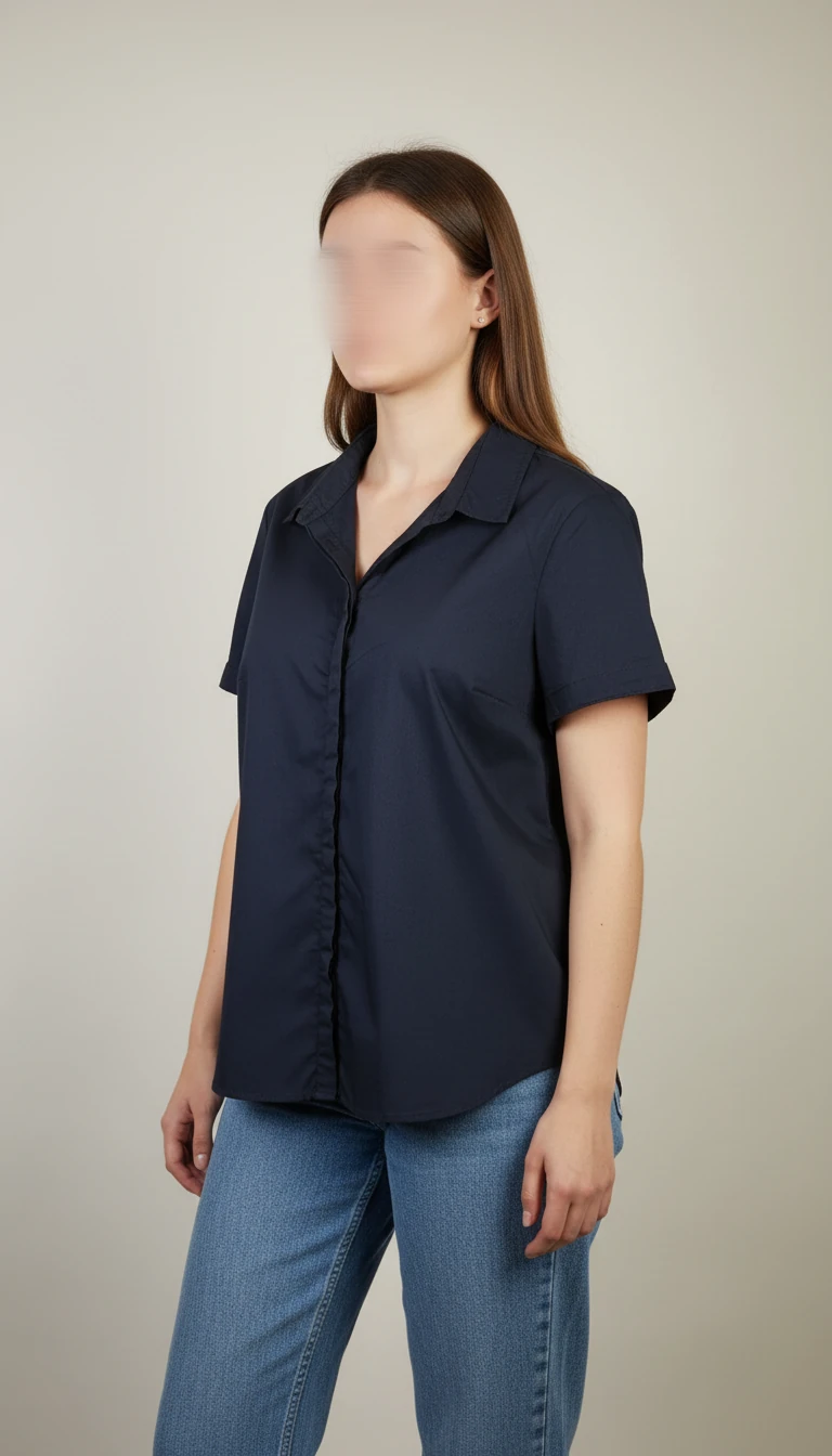 شومیز زنانه آبی کاربنی سایز بزرگ استوک کد ۱۷۴۸ | مناسب سایز ۵۰–۵۲