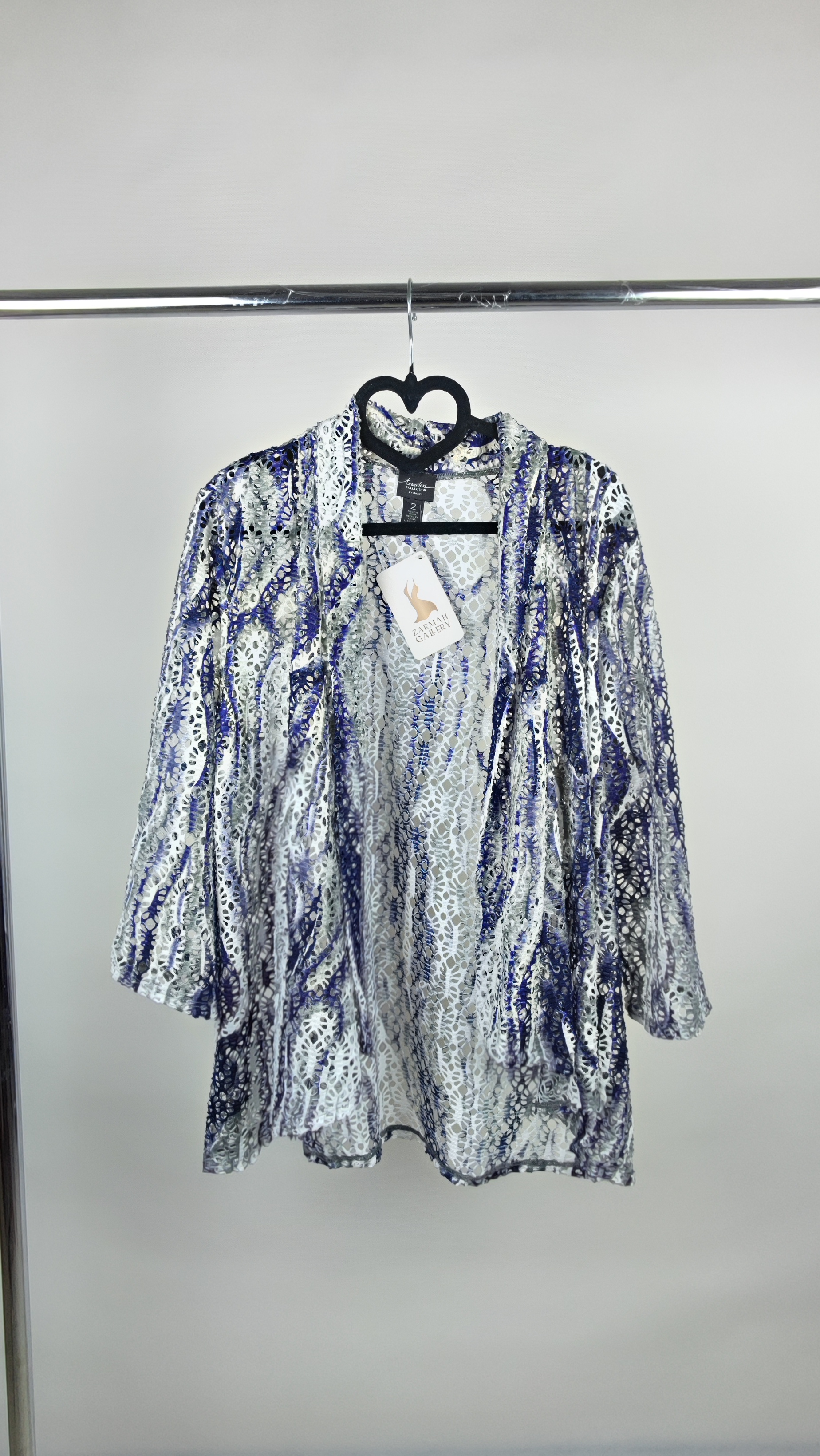تاپ زنانه سایز بزرگ طرحدار آبیسبز استوک کد ۱۶۷۹ | مناسب سایز ۵۲–۵۴ | زرماه گالری