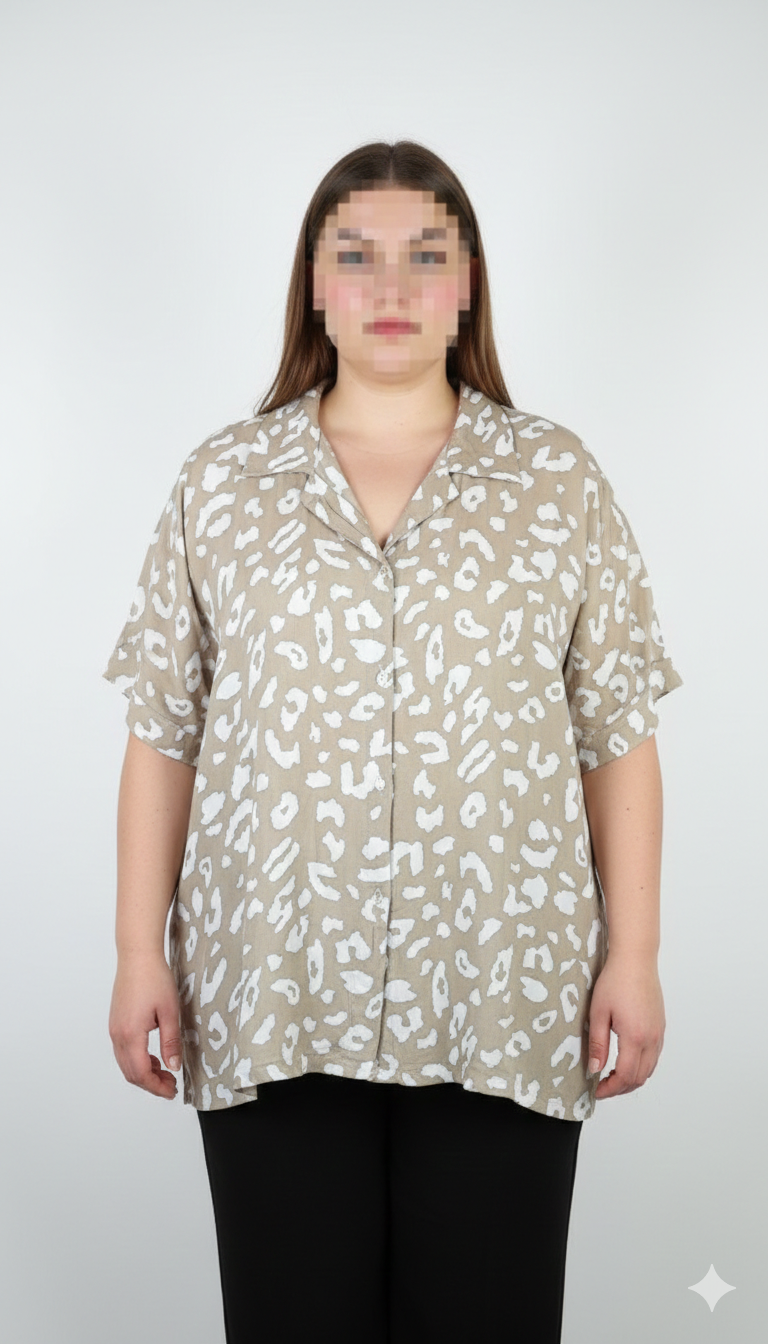 شومیز زنانه وارداتی استوک طرح پلنگی مدرن کد ۱۹۶۵ مناسب سایز ۴۶ و ۴۸ | قواره آزاد، جنس نخی بسیار خنک و تنخور عالی