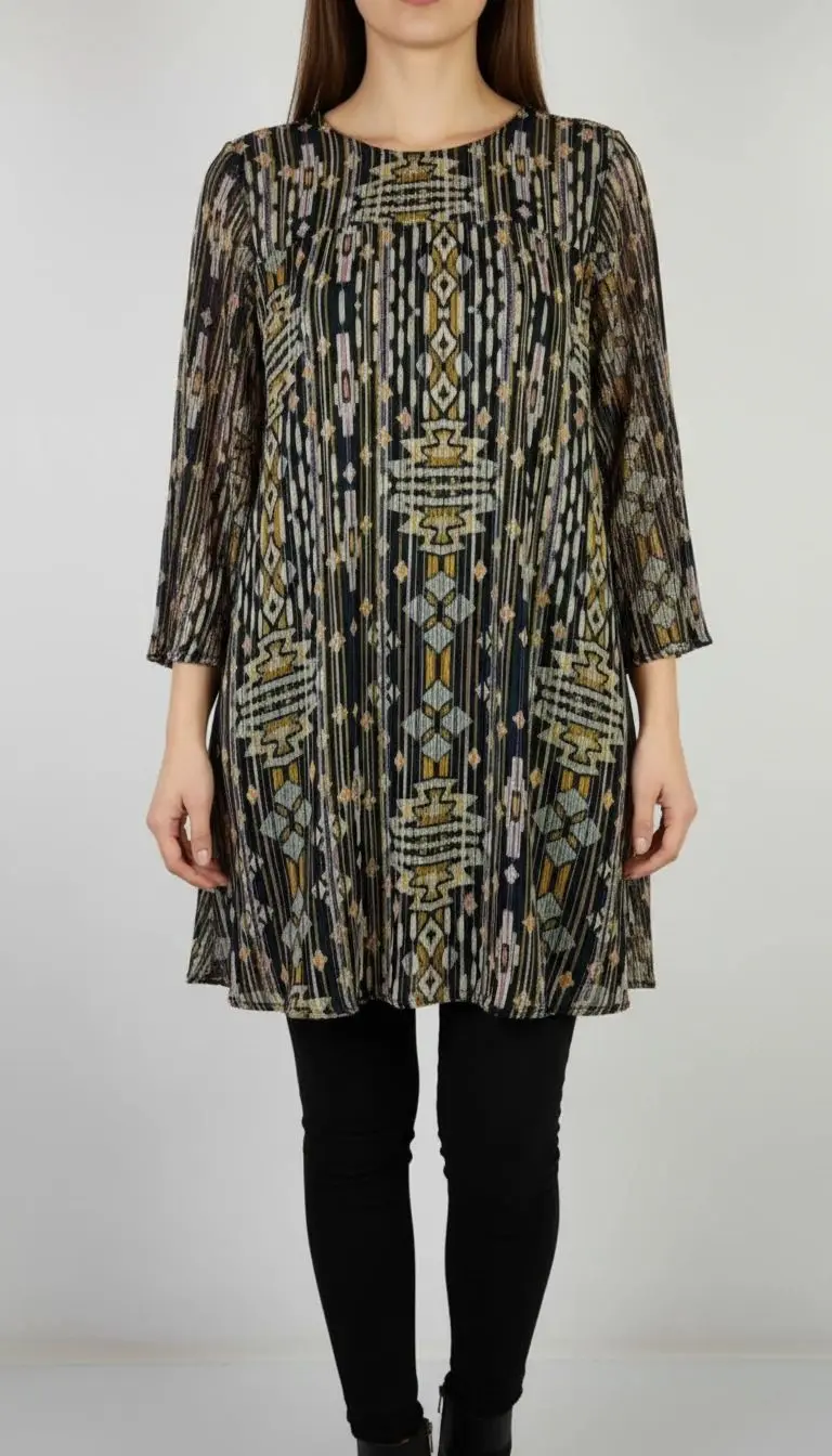 پیراهن زنانه استوک کد ۹۸۹ | پیراهن طرحدار آستینبلند یقهگرد سایز ۴۲–۴۴ با طرح جذاب | زرماه گالری 🌿✨