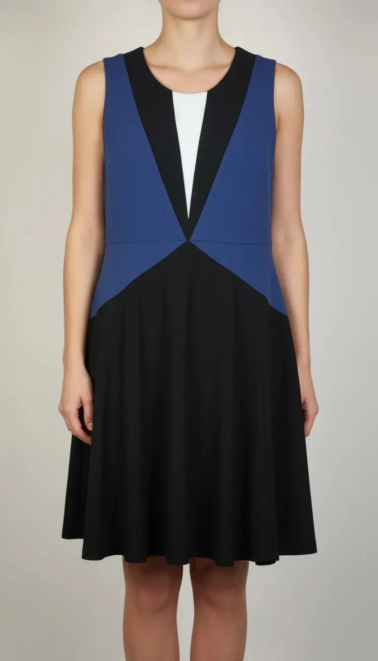 پیراهن زنانه استوک کد ۱۱۸۴ | پیراهن دورنگ بدونآستین سایز ۳۸–۴۰ با فرم شیک و رسمی | زرماه گالری ✨🌿