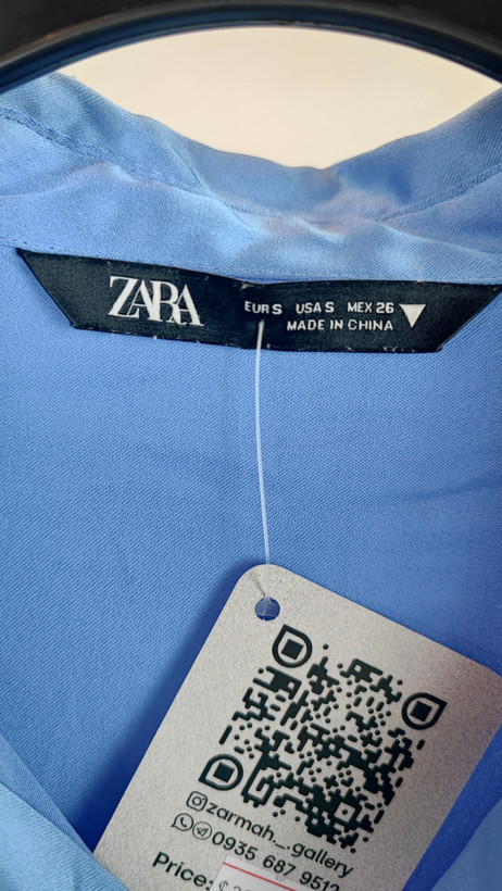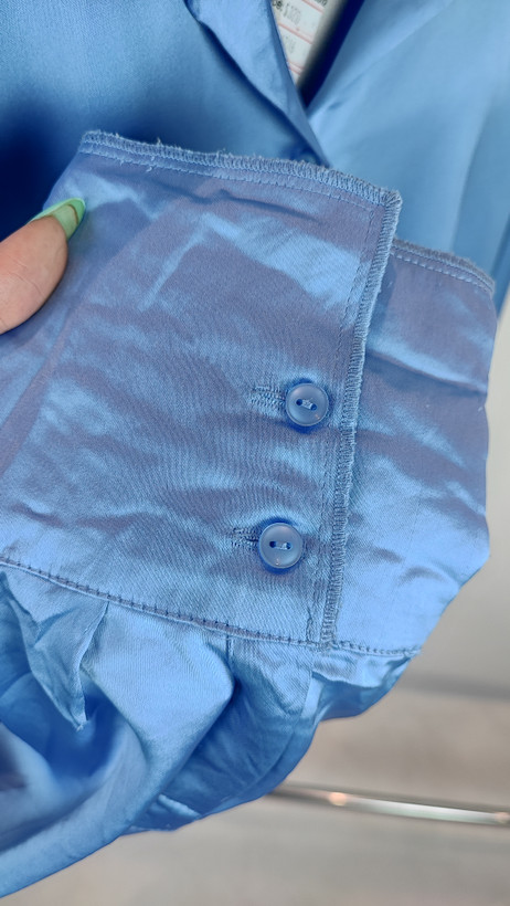 شومیز زنانه ساتن آبی استوک کد ۱۲۱۶ | (ایراد دار نخ کش دارد )