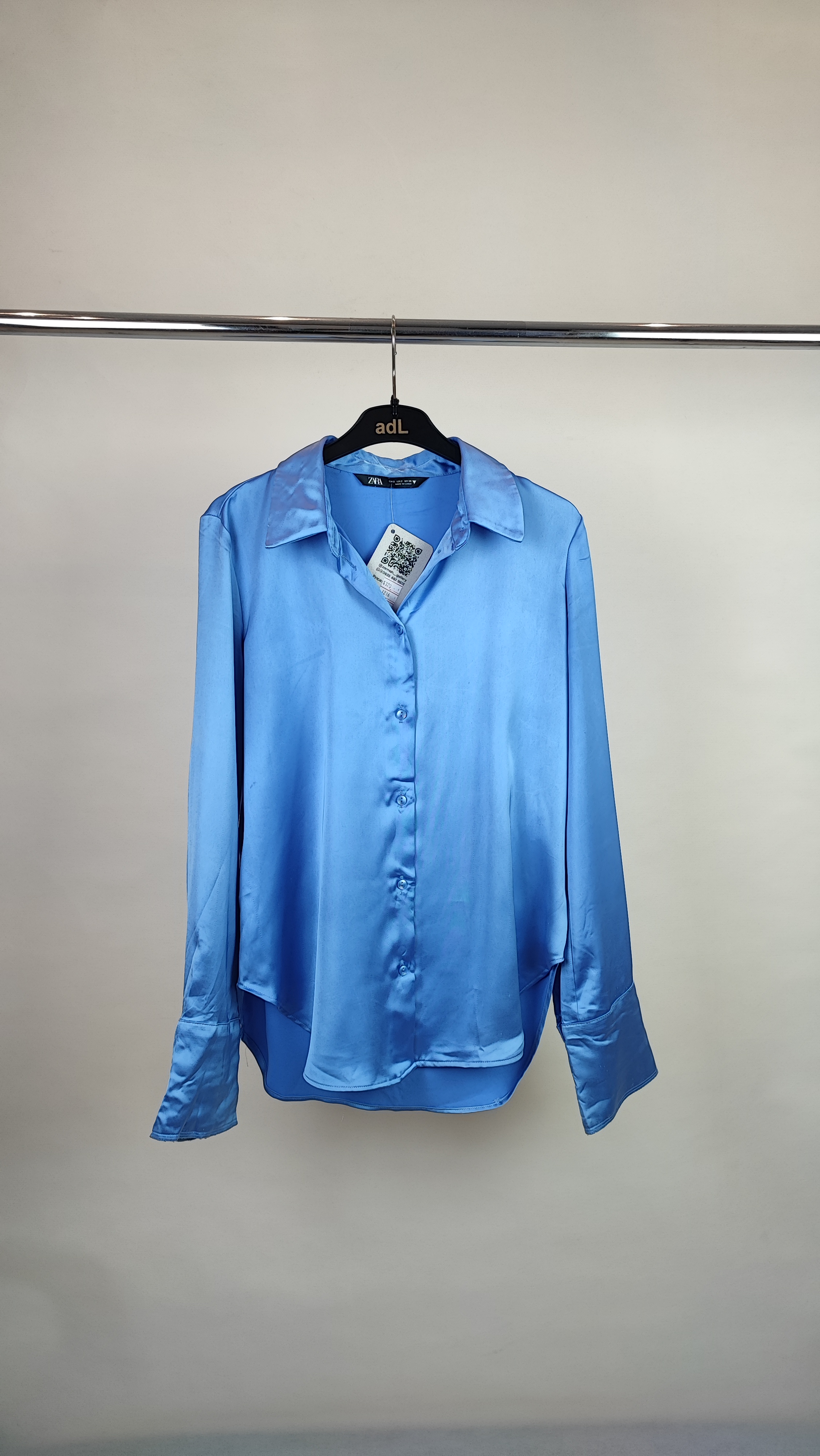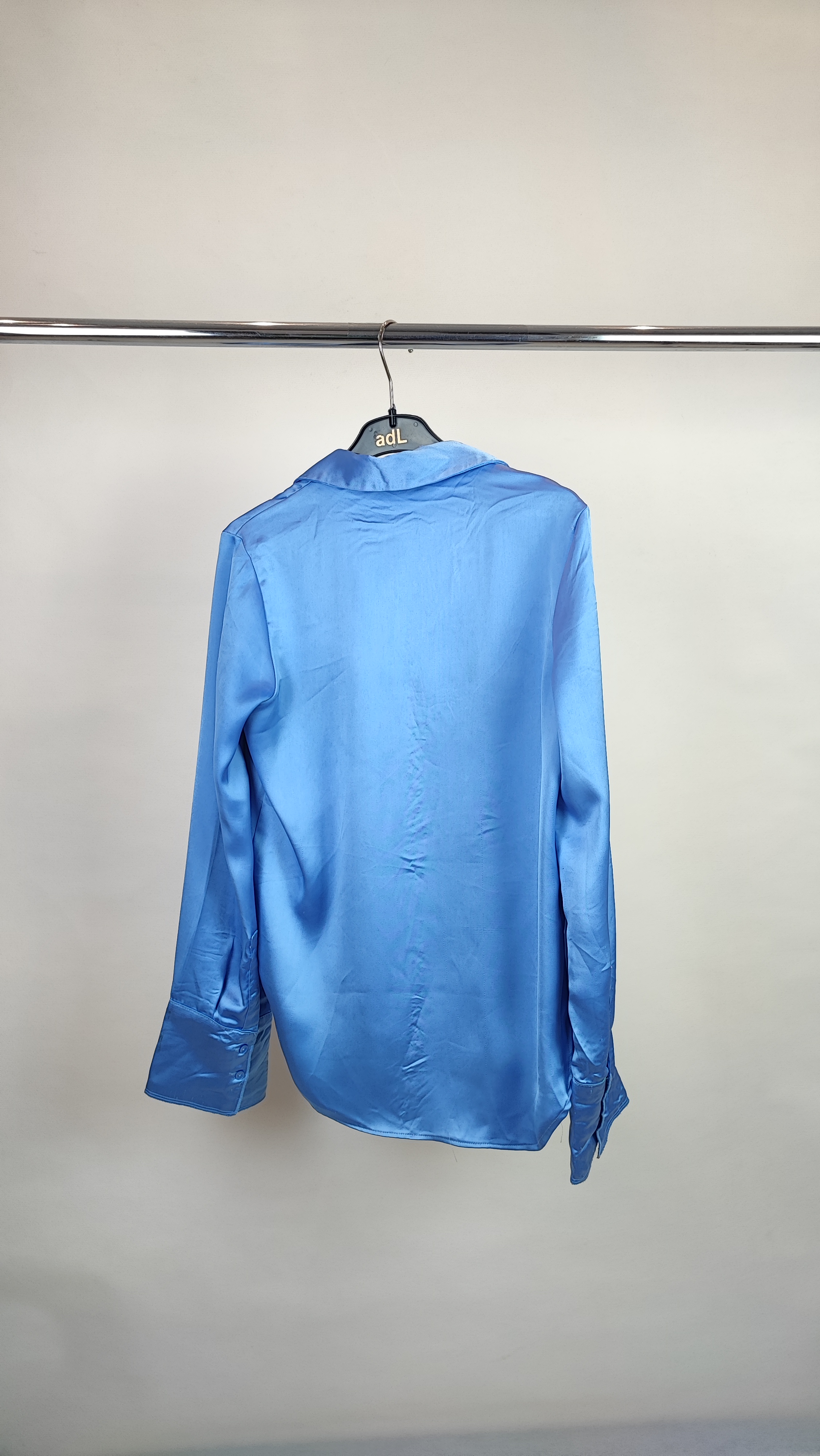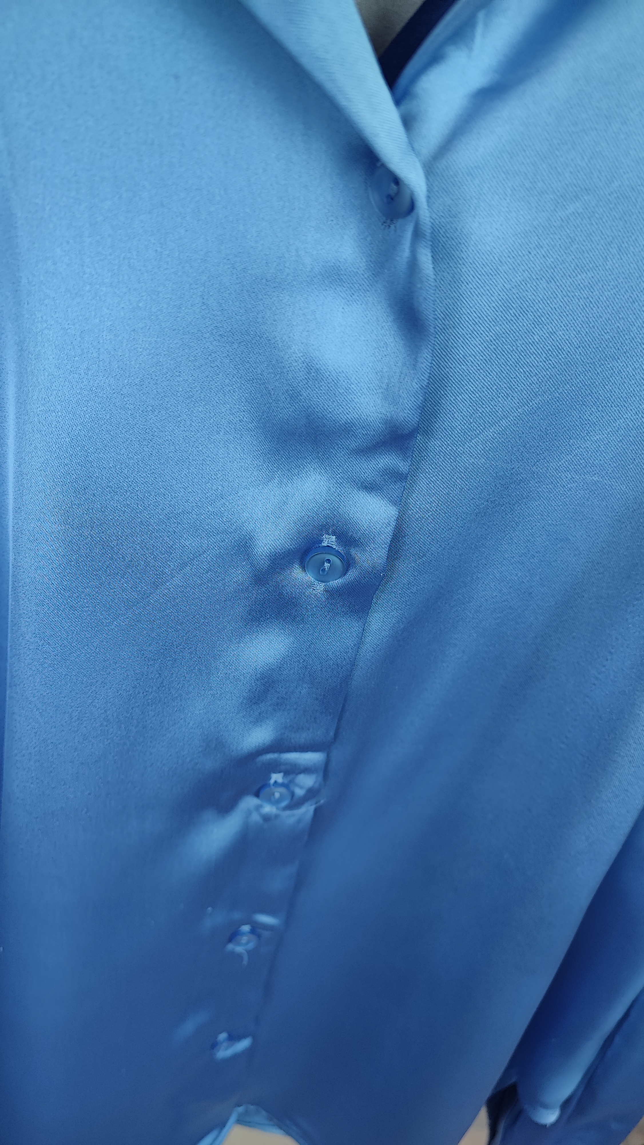 شومیز زنانه ساتن آبی استوک کد ۱۲۱۶ | (ایراد دار نخ کش دارد )