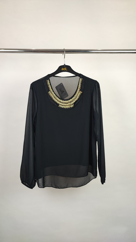شومیز زنانه مشکی یقهکارشده استوک کد ۷۶۲ | مدل شیک و خاص زرماه گالری