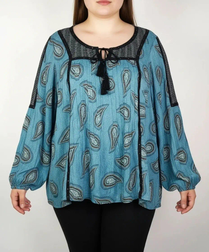 شومیز زنانه یقه گرد طرحدار جنس نخی کد۱۶۲۴