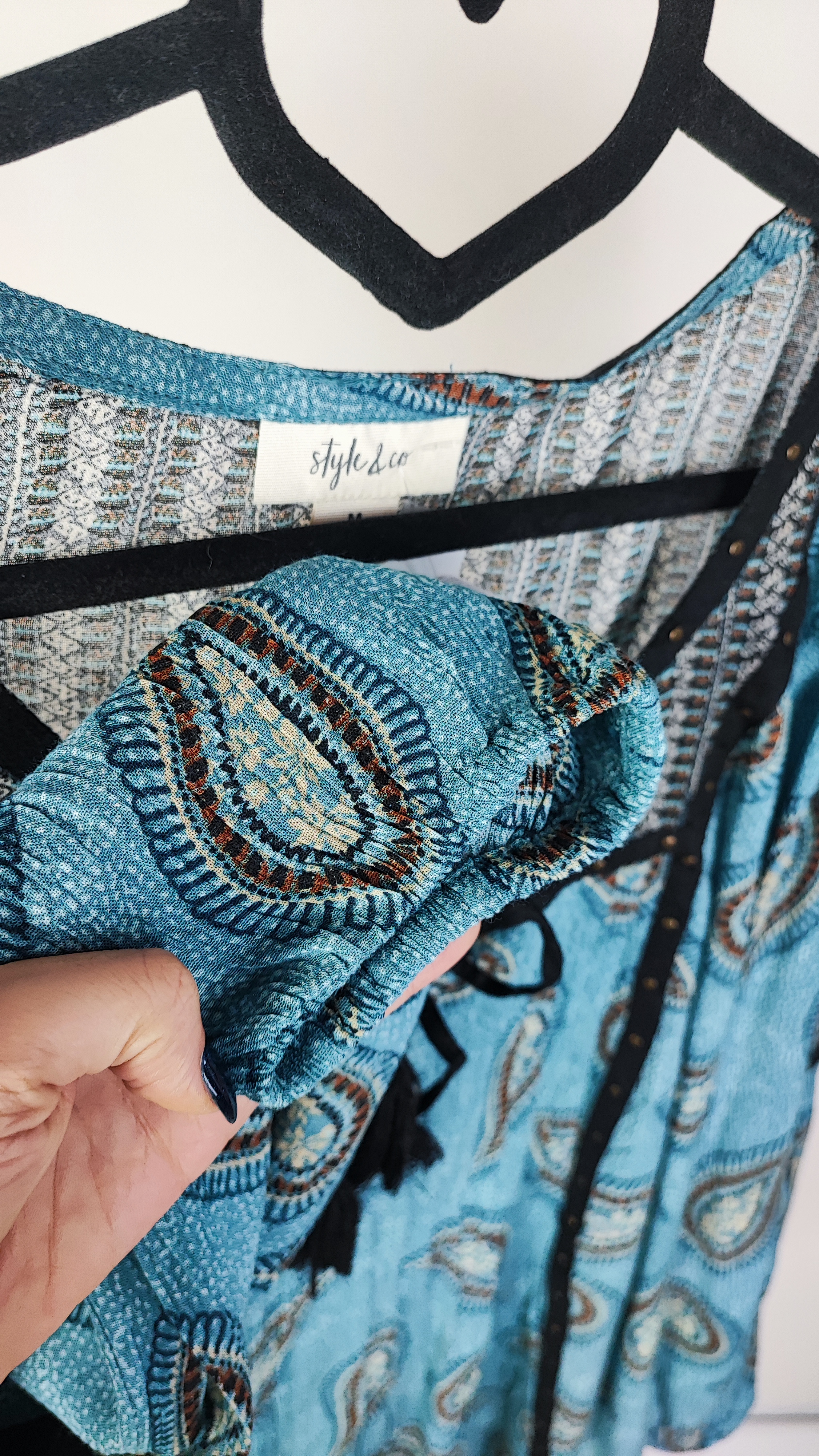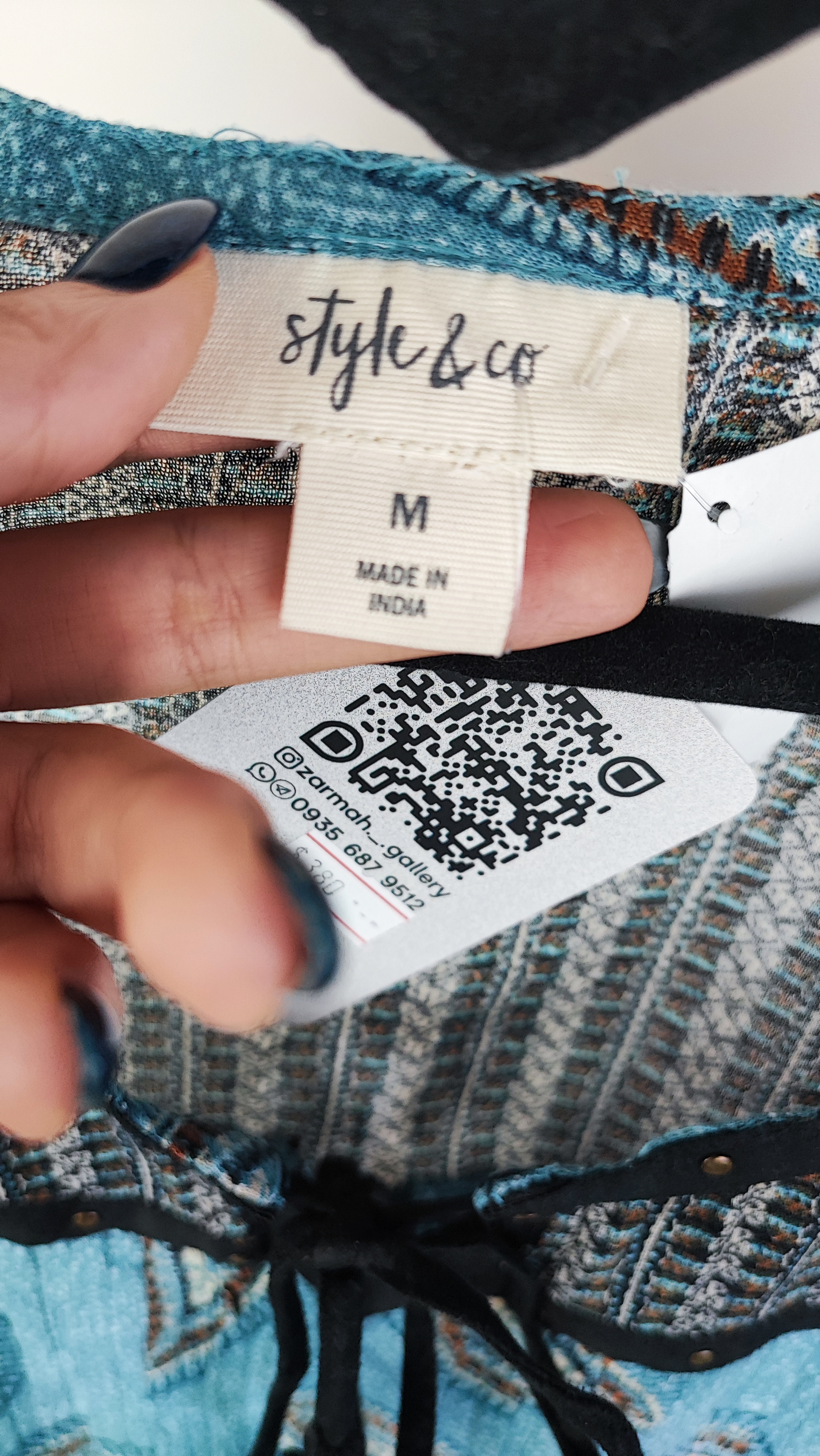 شومیز زنانه یقه گرد طرحدار جنس نخی کد۱۶۲۴