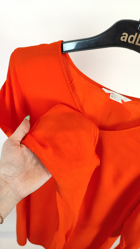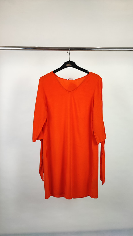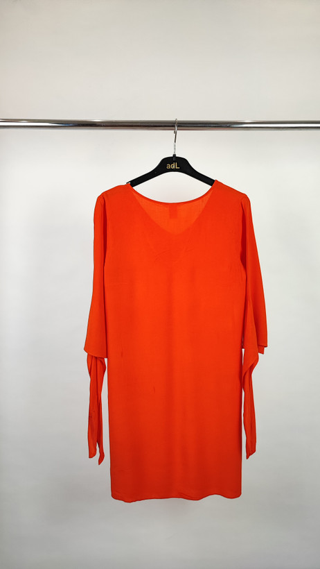 تونیک زنانه استوک کد ۶۸۱ | رنگ نارنجی روشن با آستین سهربع و فرم آزاد سایز ۳۶–۳۸ | زرماه گالری
