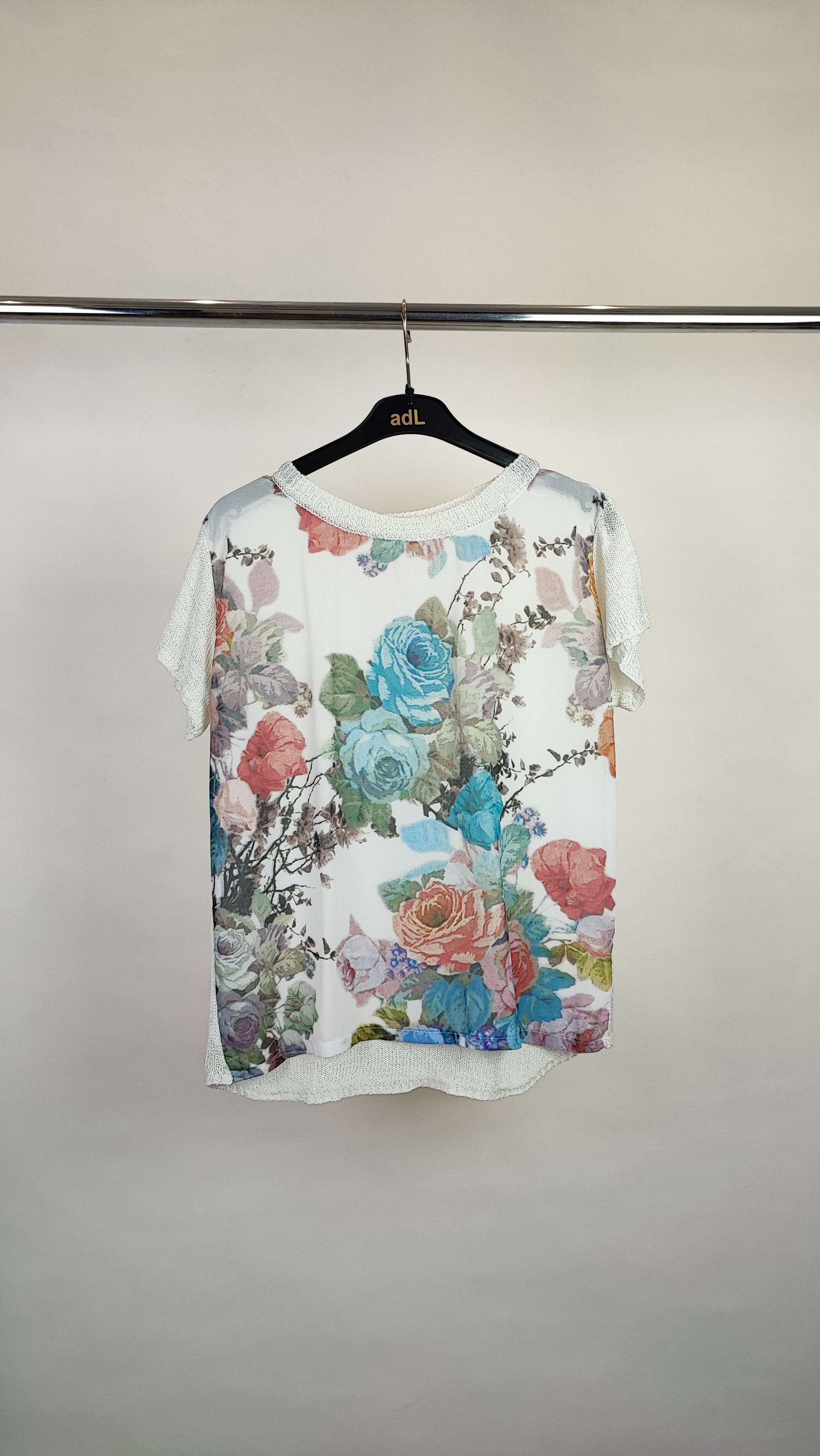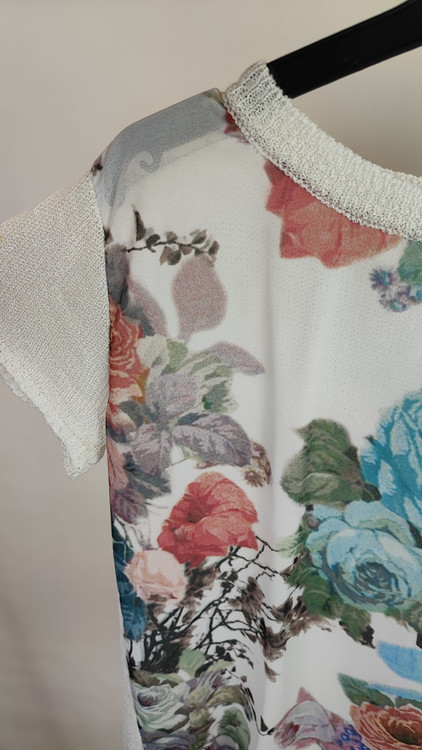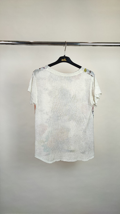 شومیز زنانه استوک کد ۱۵۵ | شومیز سفید با طرح رنگی انتزاعی سایز ۳۸–۴۰ | زرماه گالری 🎨