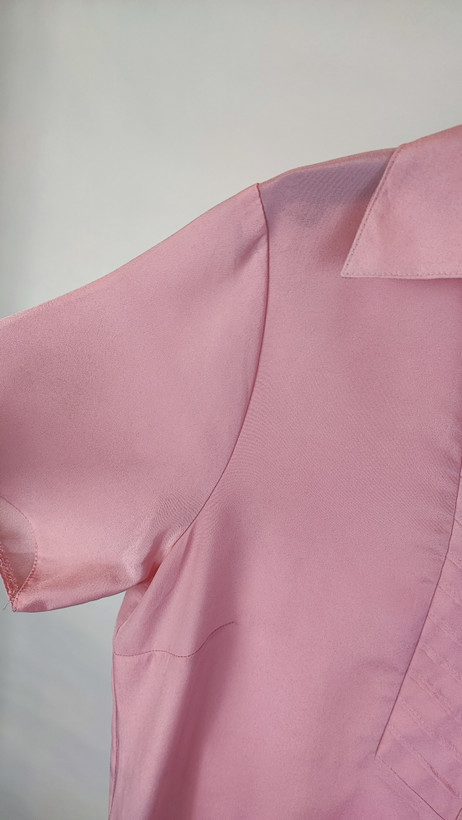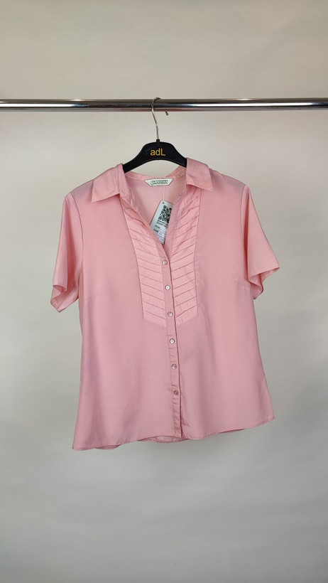 شومیز زنانه استوک کد ۲۵۱ | شومیز صورتی آستین‌متوسط یقه‌برگردان سایز ۴۰–۴۲ | زرماه گالری 🌸