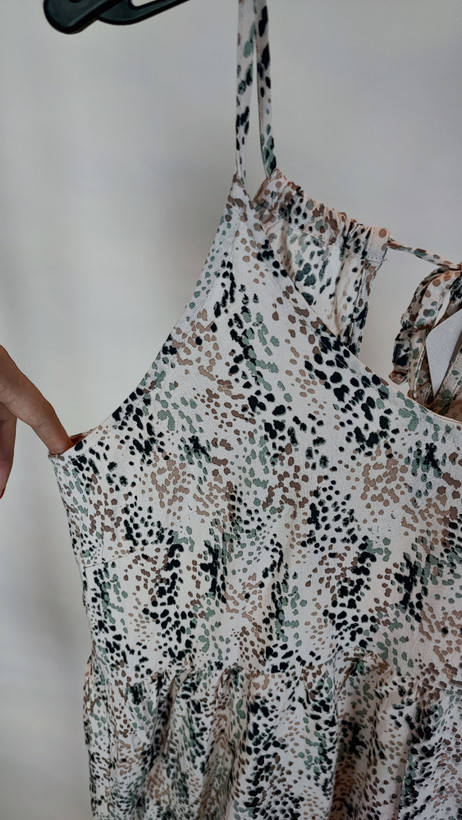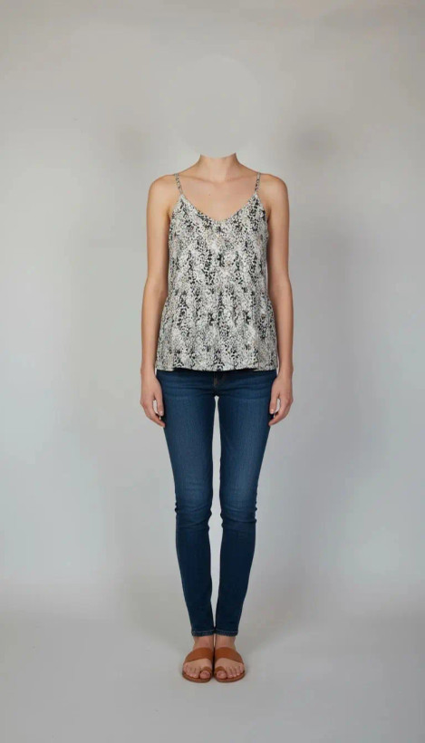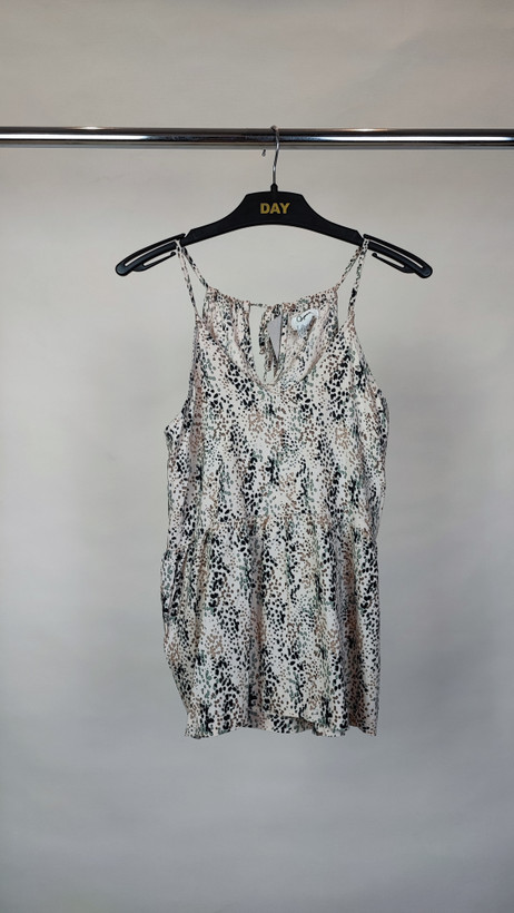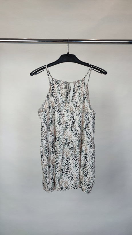 تاپ زنانه استوک کد ۱۲۹۸ | تاپ طرحدار یقهگرد بدون آستین سایز ۳۸–۴۰ | زرماه گالری 🌿