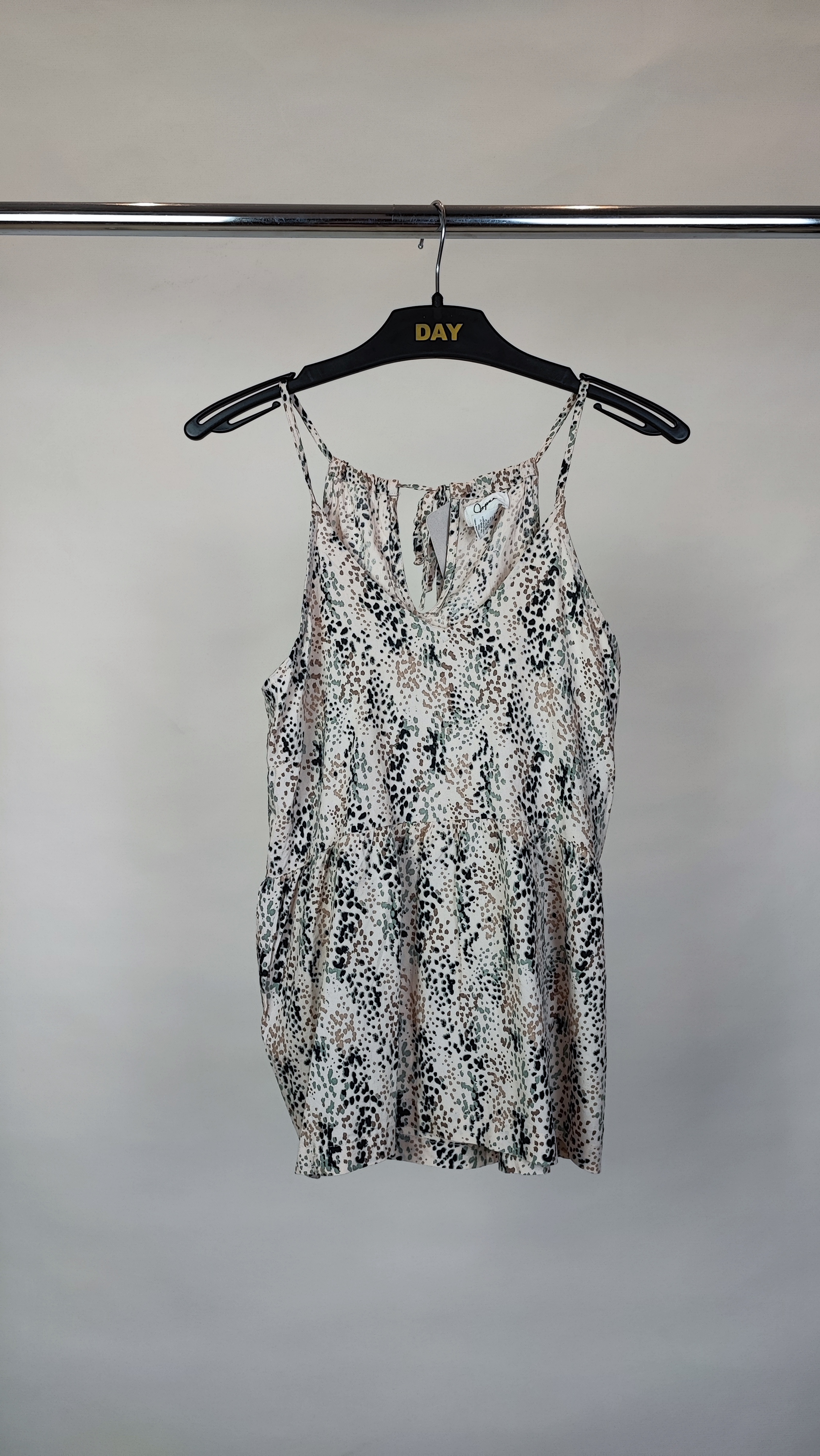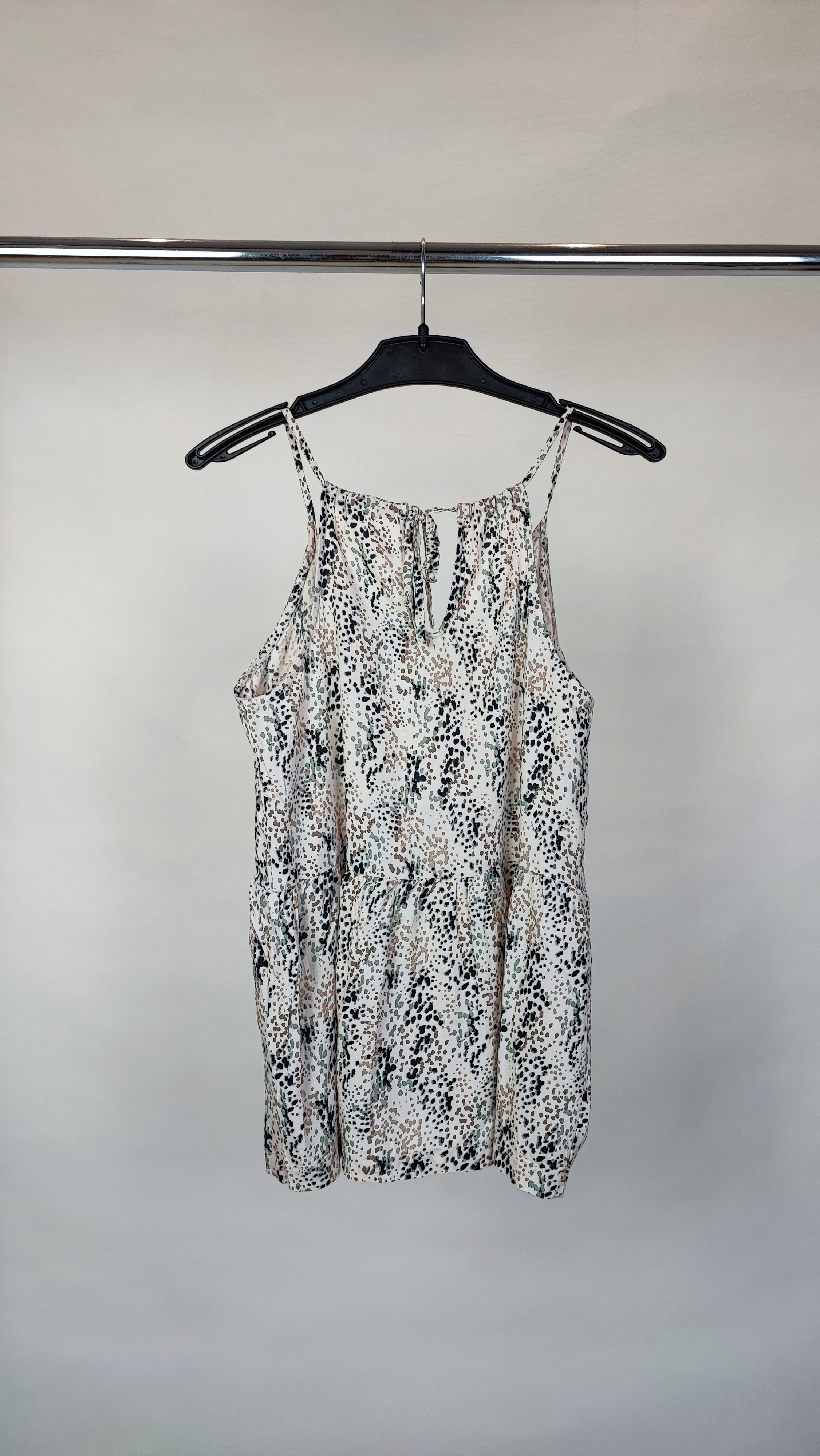 تاپ زنانه استوک کد ۱۲۹۸ | تاپ طرحدار یقهگرد بدون آستین سایز ۳۸–۴۰ | زرماه گالری 🌿