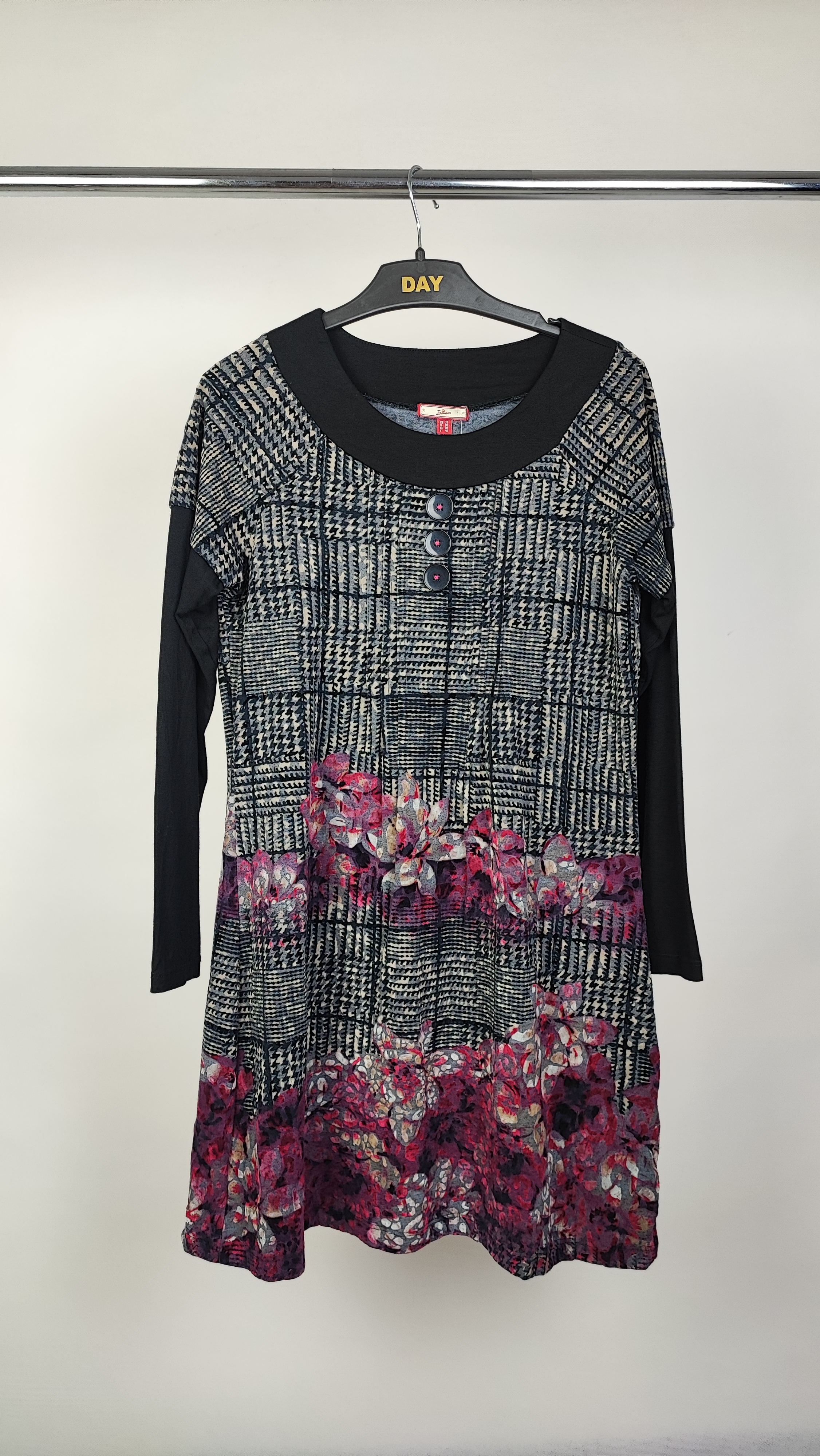 پیراهن زنانه استوک کد ۹۸۹ | پیراهن طرحدار آستینبلند یقهگرد سایز ۴۲–۴۴ با طرح جذاب | زرماه گالری 🌿✨