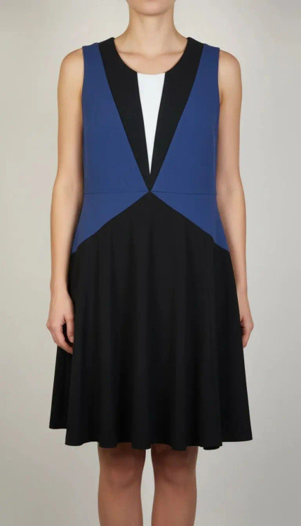پیراهن زنانه استوک کد ۱۱۴۹ یک مدل خاص و خوشفرم با ترکیب رنگی آبی و مشکیه که استایل رو خیلی متفاوت و مرتب نشون میده ✨