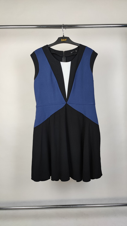 پیراهن زنانه استوک کد ۱۱۴۹ | پیراهن بدونآستین دورنگ آبیمشکی سایز ۴۴–۴۶ با فرم راحت و شیک | زرماه گالری ✨🌿