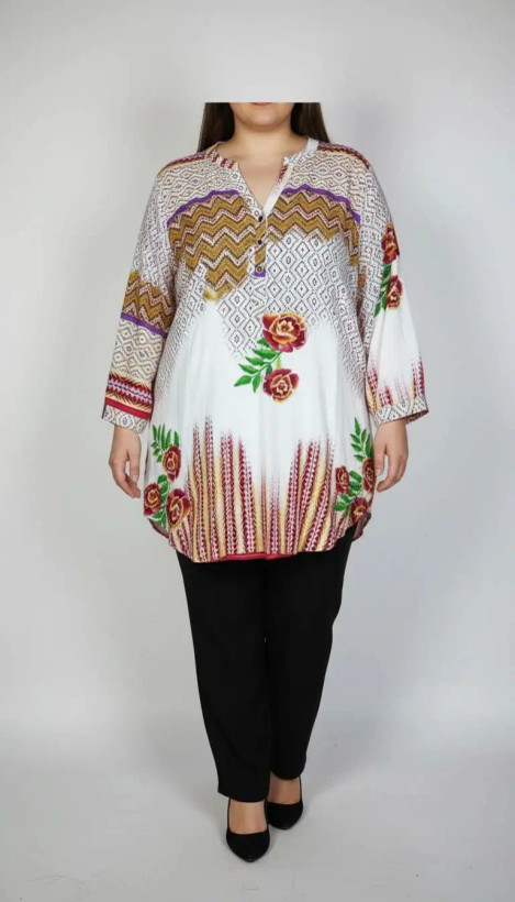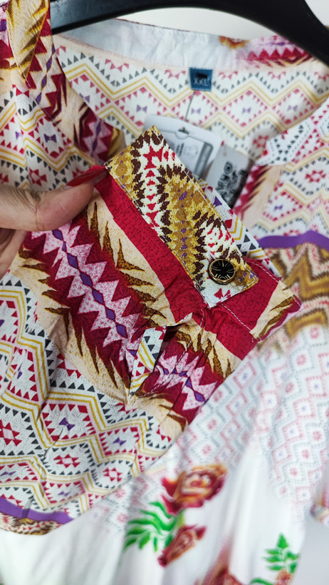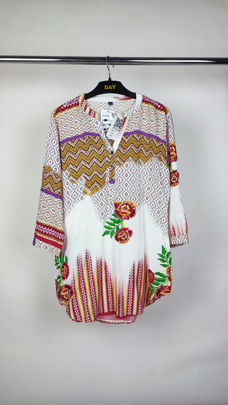 شومیز زنانه استوک کد ۱۲۷۶ | شومیز طرحدار آزاد و خنک سایز ۴۴–۴۶ با قد بلند و تنخور راحت | زرماه گالری ✨🌸