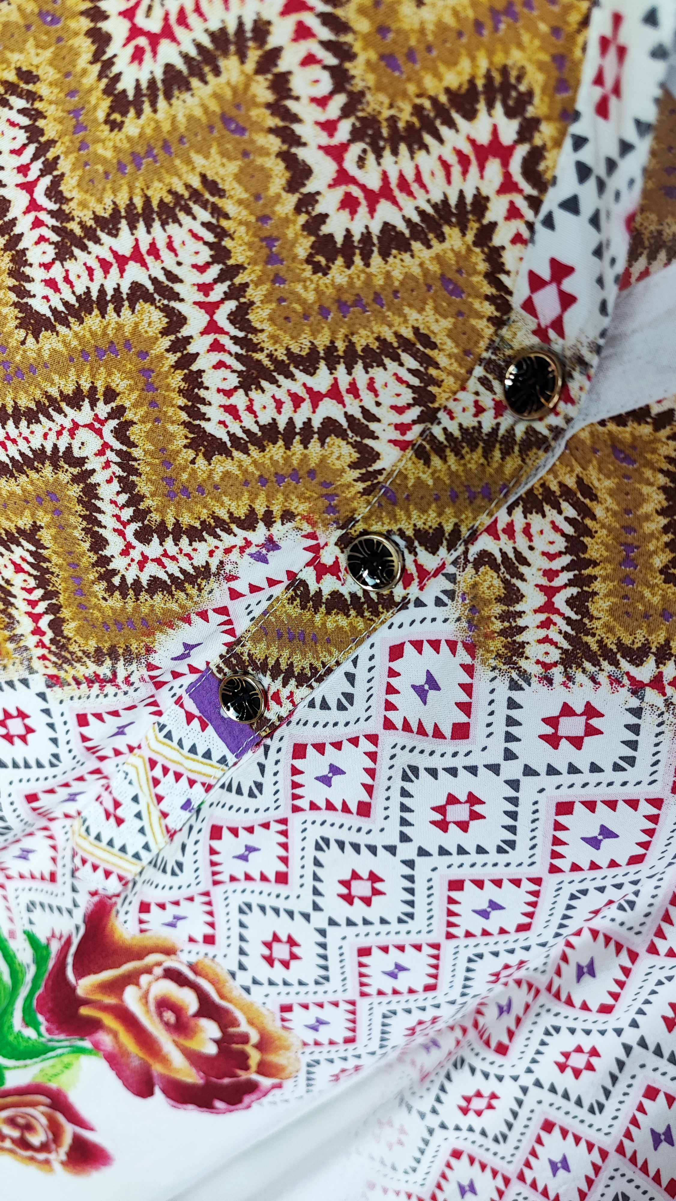 شومیز زنانه استوک کد ۱۲۷۶ | شومیز طرحدار آزاد و خنک سایز ۴۴–۴۶ با قد بلند و تنخور راحت | زرماه گالری ✨🌸