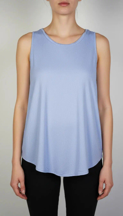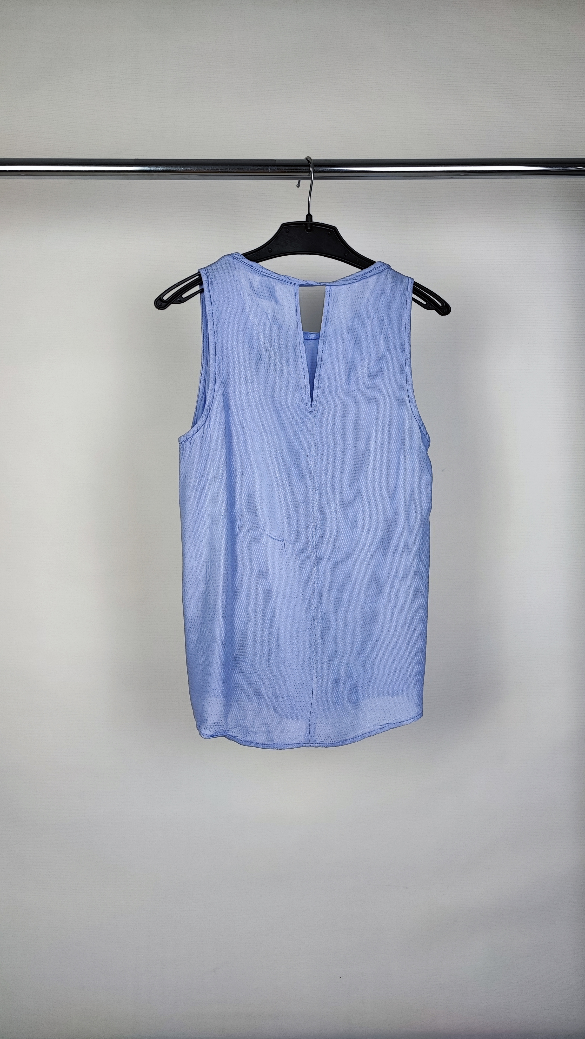تاپ زنانه استوک کد ۱۳۱۳ یک مدل بدونآستین خنک، لطیف و ریزشدار با رنگ آبی ملایمه که استایل رو فوری مرتب، تمیز و شیک نشون میده 💙✨