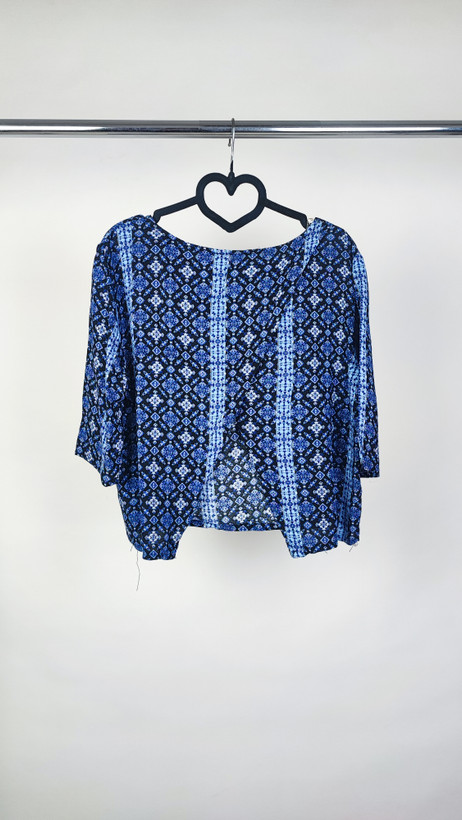 شومیز نیمتنه زنانه استوک کد ۱۴۱۵ | نیمتنه آبی طرحدار سبک و خنک مناسب سایز ۴۰–۴۲ | زرماه گالری