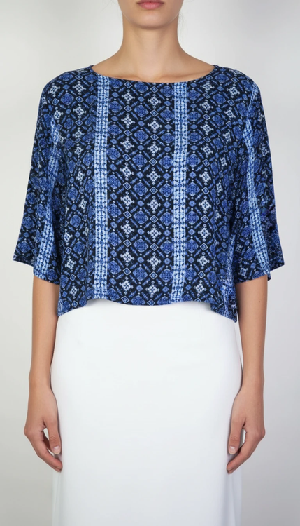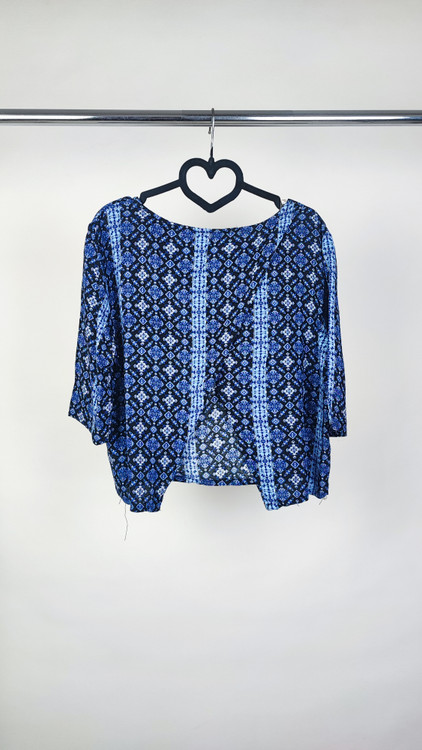 شومیز نیمتنه زنانه استوک کد ۱۴۱۵ یک مدل کوتاه، خنک و خوشطرحِ آبیه که فوراً استایل رو شاد، خاص و متفاوت نشون میده 💙✨