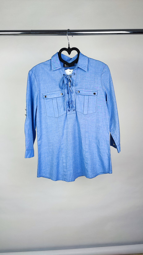شومیز زنانه استوک کد ۱۲۶۱ | شومیز آبی مجلسی سایز ۳۸‑۴۰