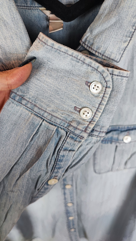 شومیز جین زنانه آبی روشن استوک کد ۱۵۱۴ | مناسب سایز ۳۸–۴۰ | زرماه گالری