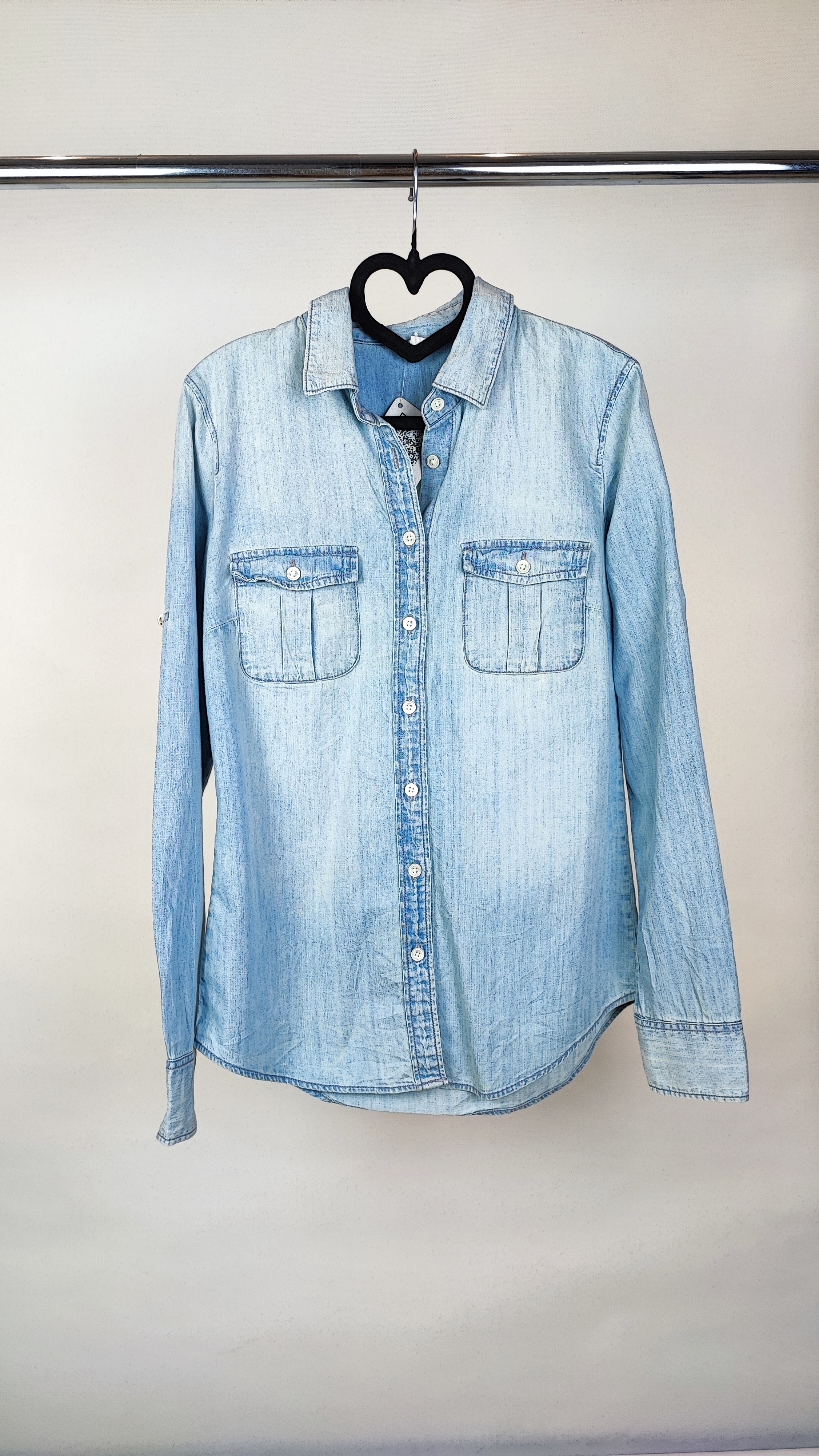 شومیز جین زنانه آبی روشن استوک کد ۱۵۱۴ | مناسب سایز ۳۸–۴۰ | زرماه گالری