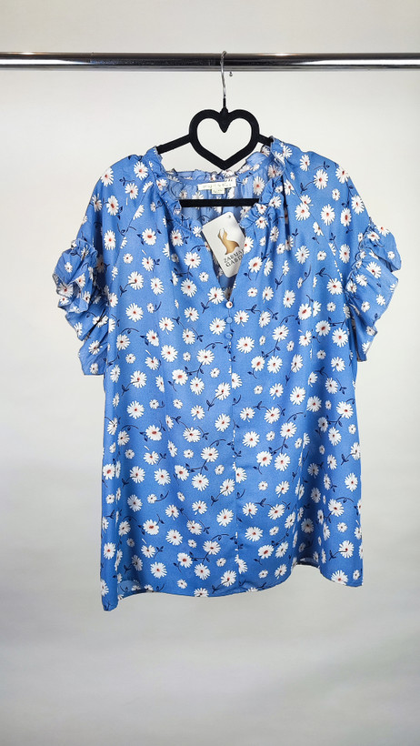 شومیز زنانه سایز بزرگ آبی طرحدار استوک کد ۱۶۹۲ | مناسب سایز ۴۸–۵۰ | زرماه گالری