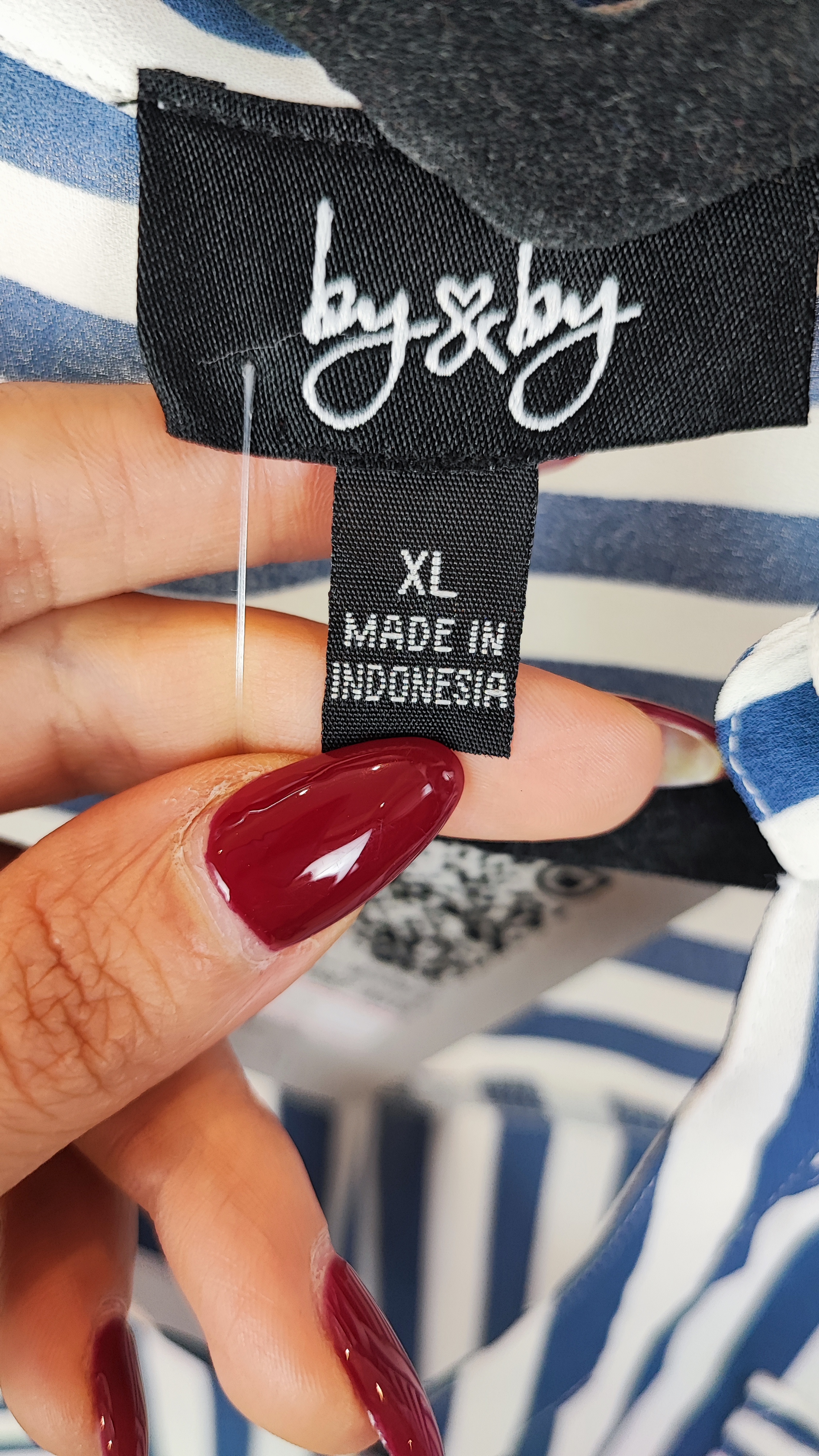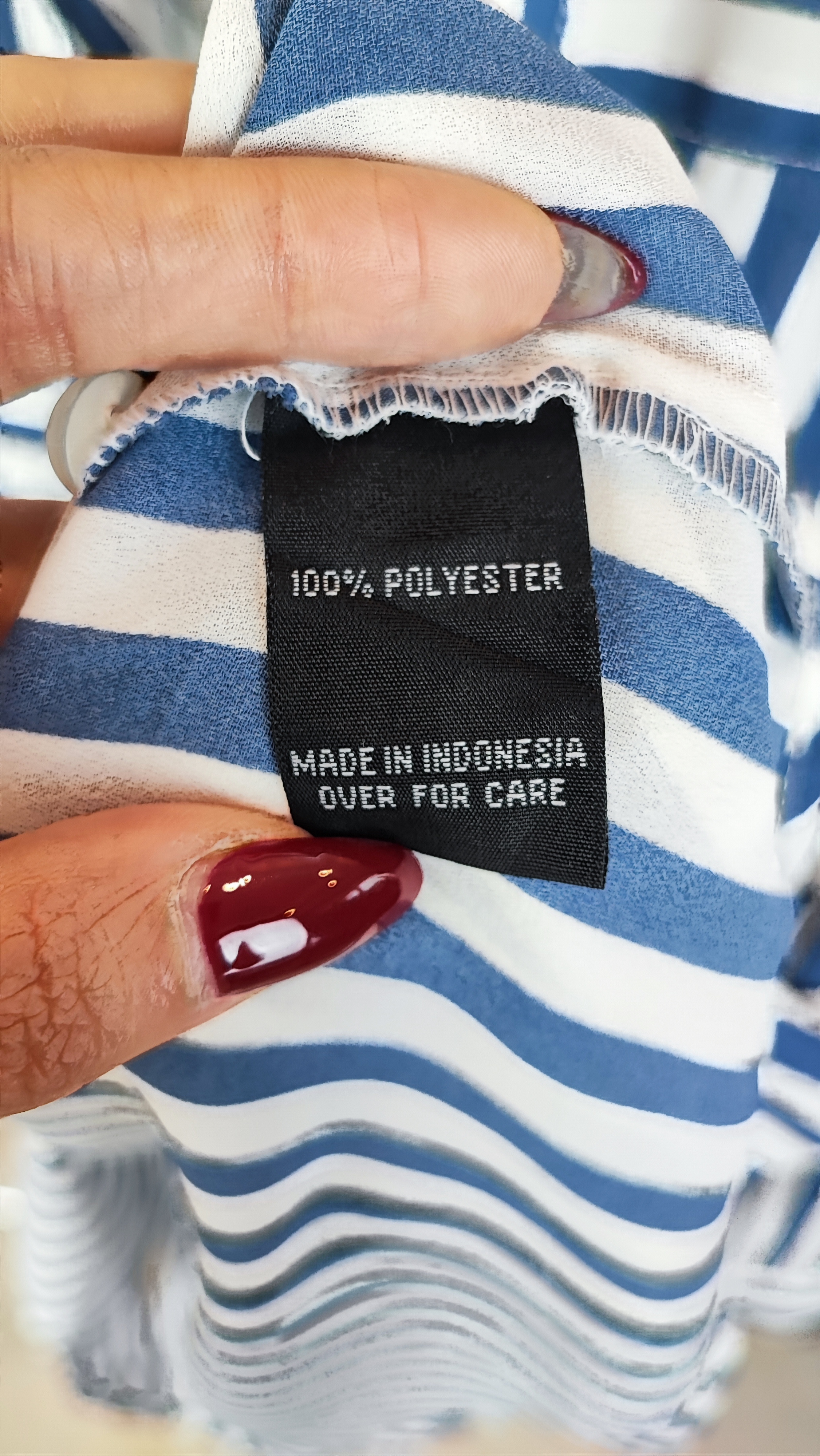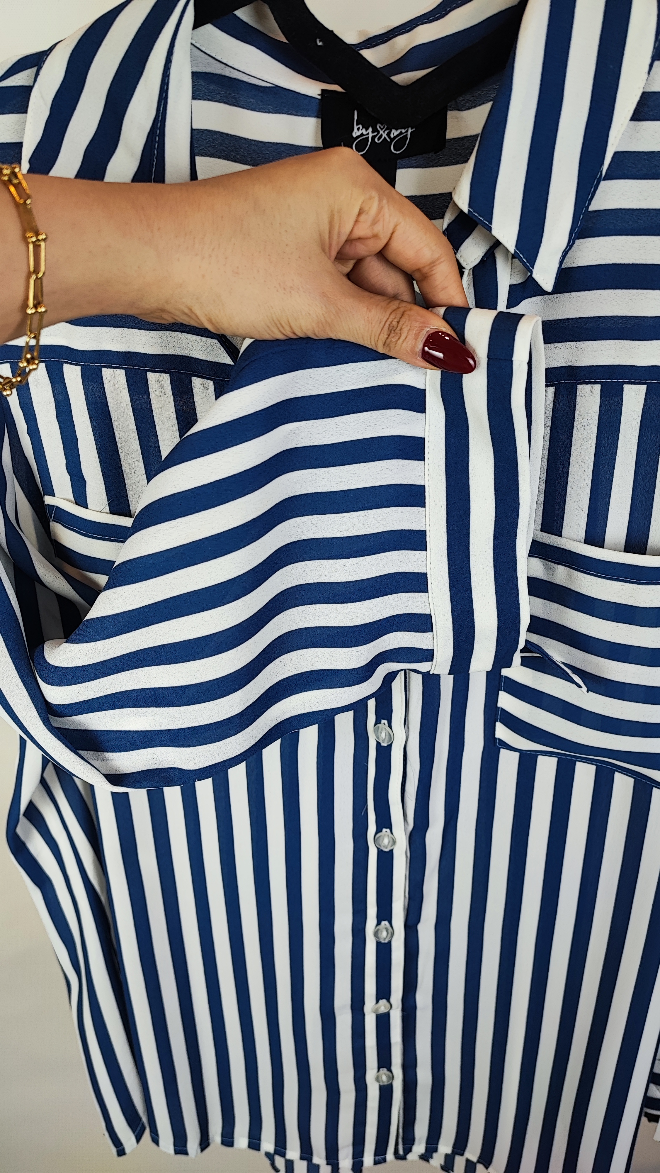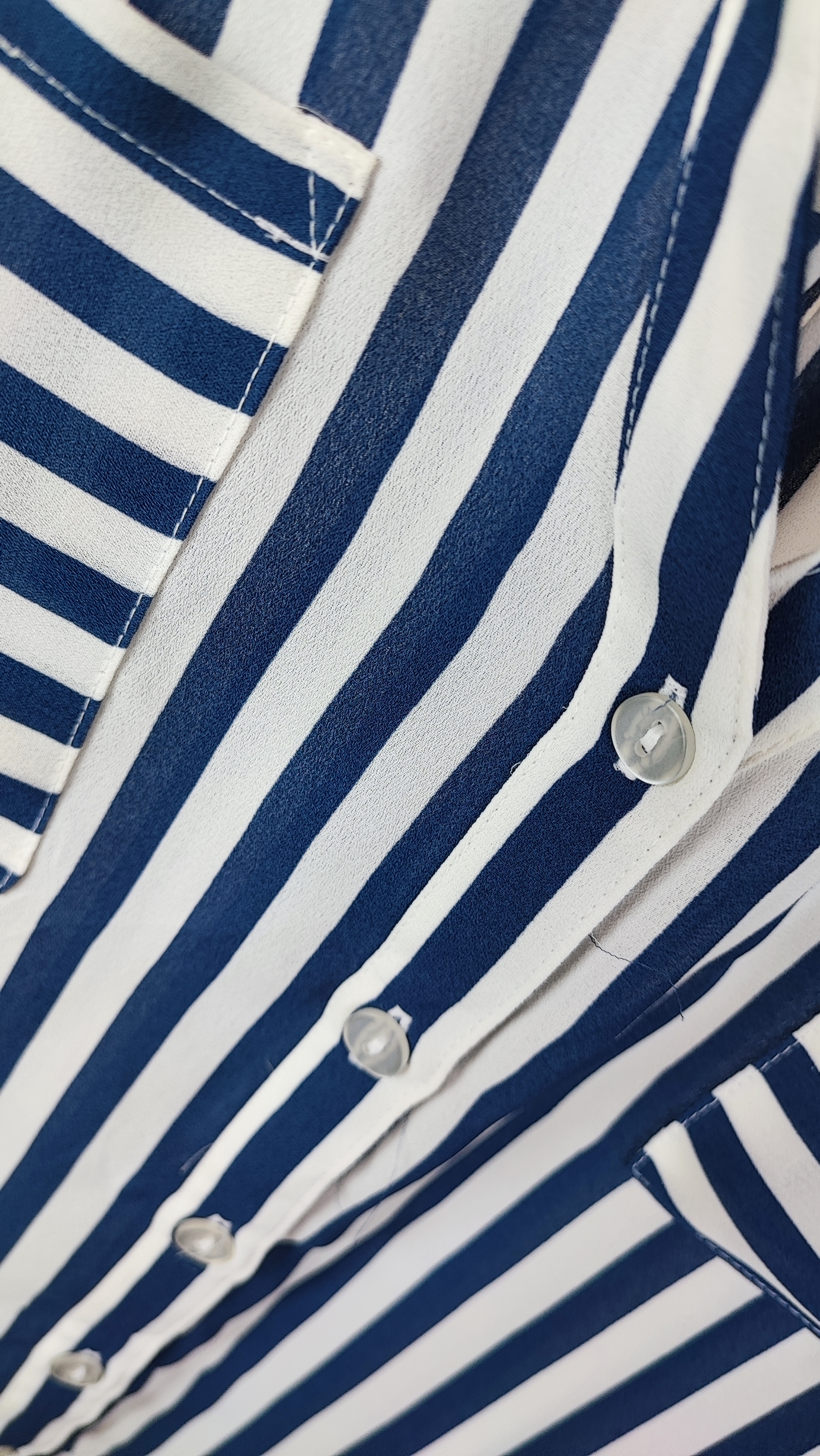 شومیز زنانه آبی راه‌راه استوک سایز بزرگ کد ۱۷۷۴ | مناسب سایز ۴۴–۴۶