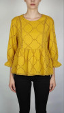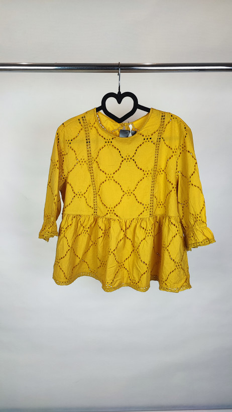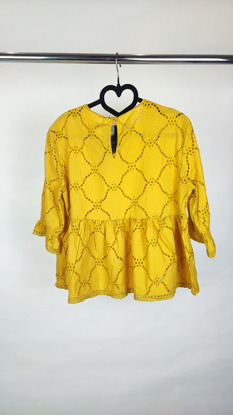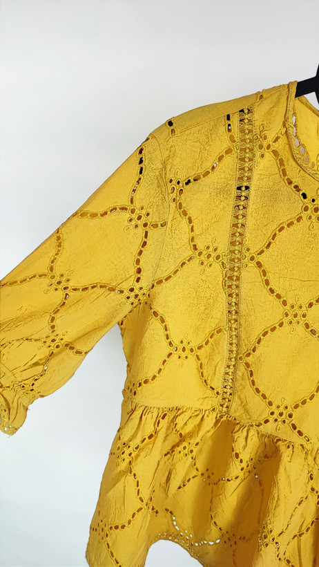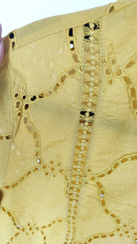 شومیز زنانه استوک خامهدوزی کد ۱۵۸۹ | شومیز زرد آستین سهربع سایز ۴۰‑۴۲