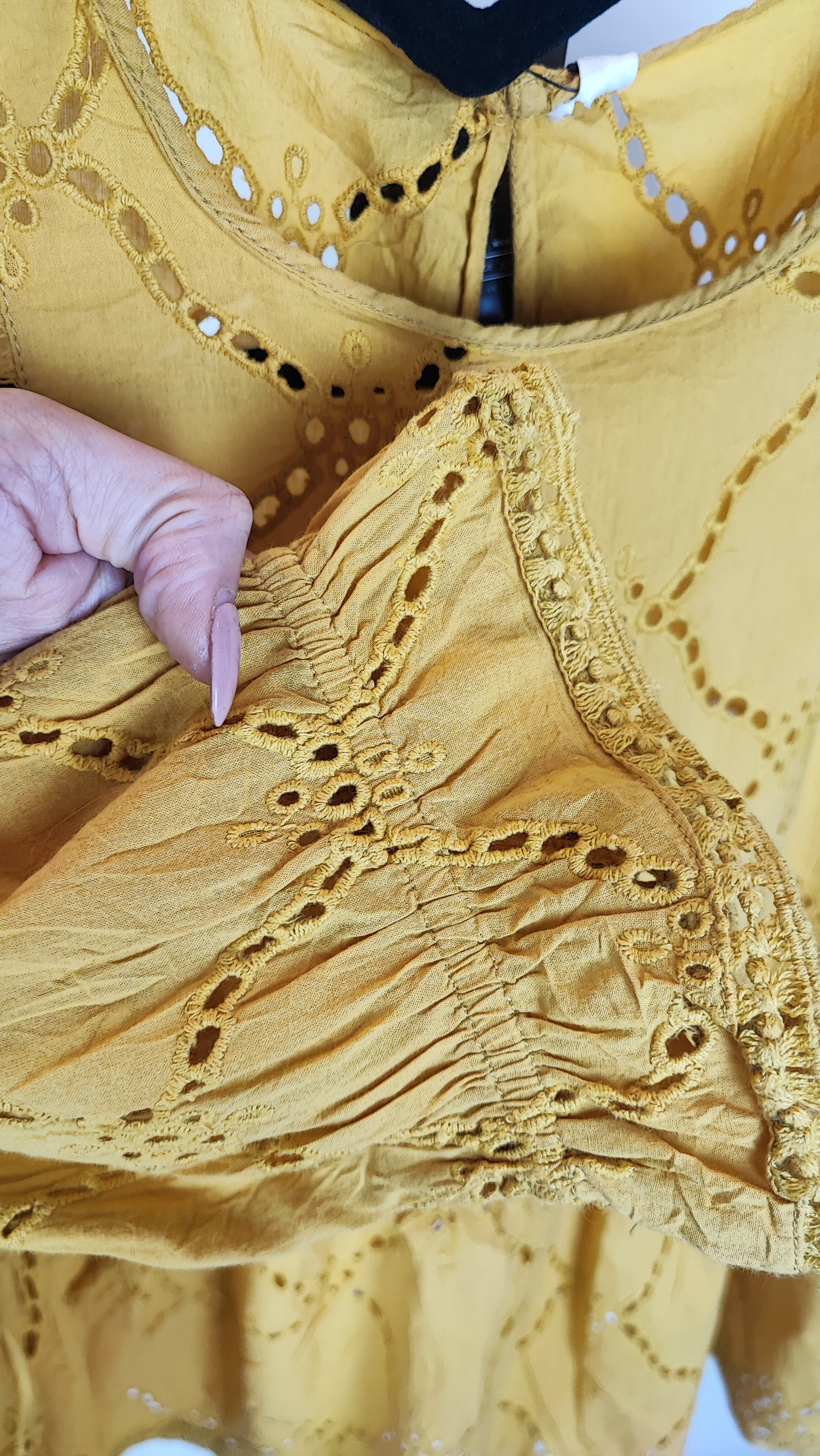 شومیز زنانه استوک خامهدوزی کد ۱۵۸۹ | شومیز زرد آستین سهربع سایز ۴۰‑۴۲