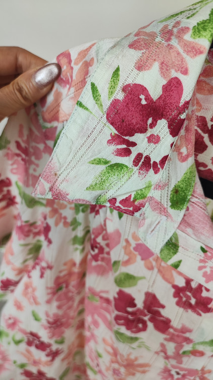شومیز زنانه وارداتی استوک کد ۱۹۴۶ با طرح شلوغ و جذاب گلدار، انتخابی ایدهآل برای استایلهای روزمره و راحت است. طراحی آزاد لباس در کنار آستین کوتاه و قد استاندارد، باعث تنخوری سبک و خوشفرم شده و برای سایزهای ۴۸ تا ۵۰ کاملاً مناسب است.