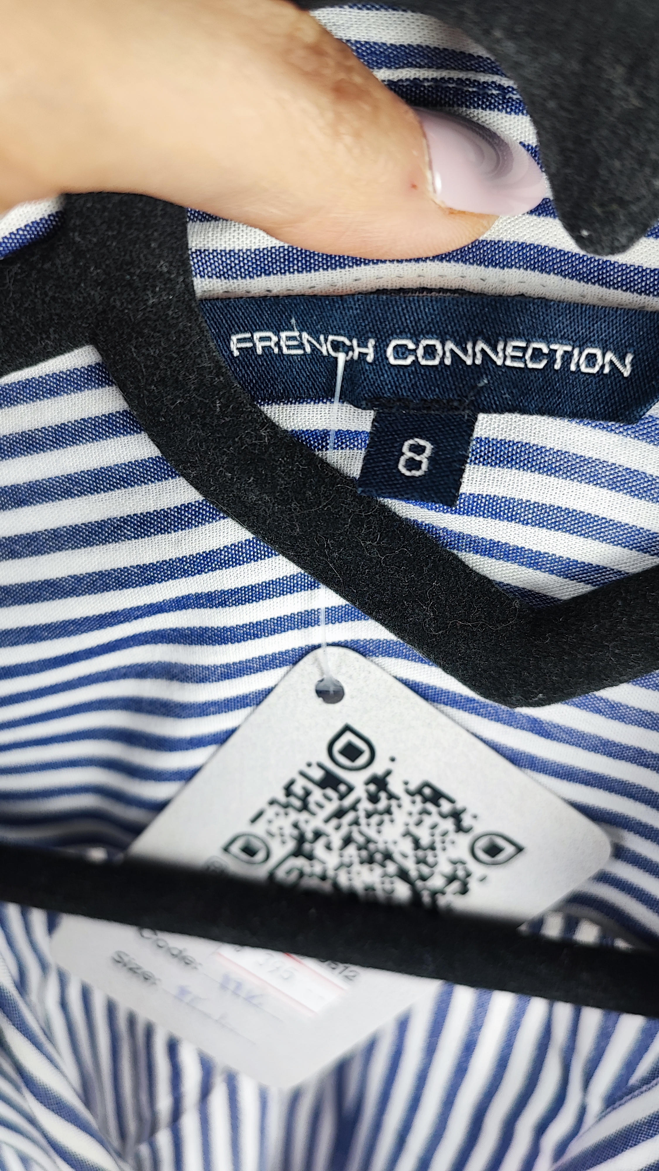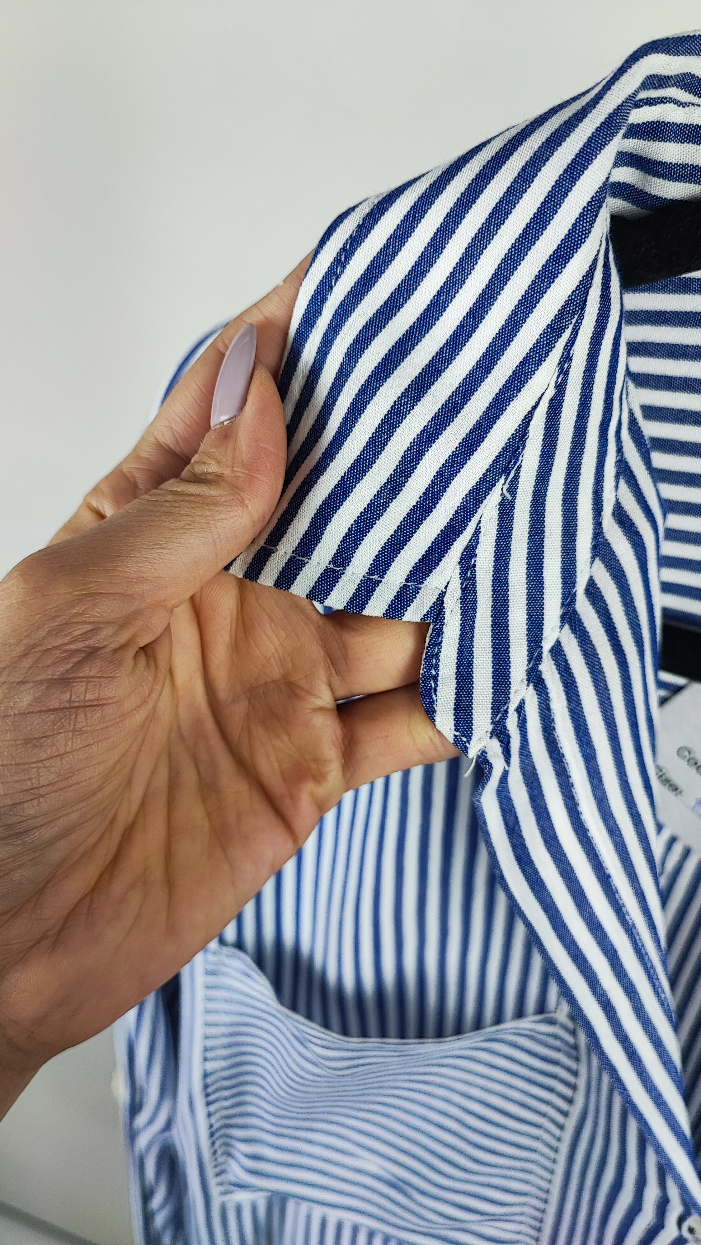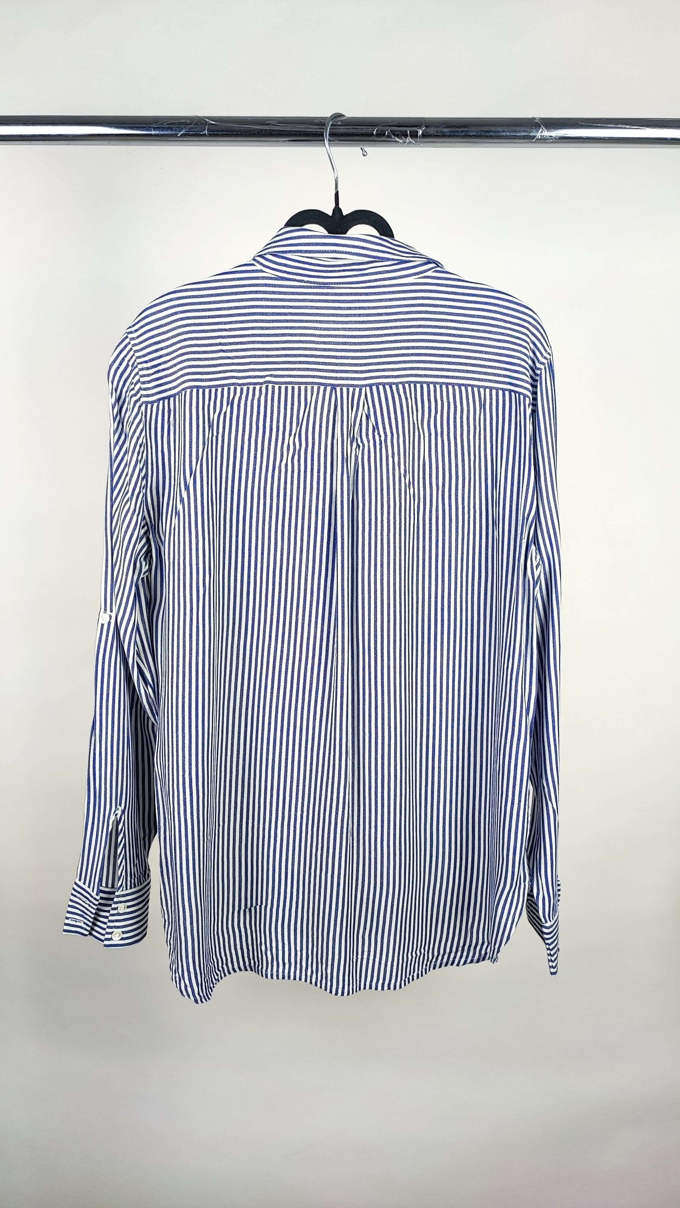 شومیز زنانه وارداتی استوک(ایراددار )کد ۱۹۷۰ مناسب سایز ۴۰-۴۲ | طرح گرافیکی سفید و آبی (ایراد جزئی دکمه)