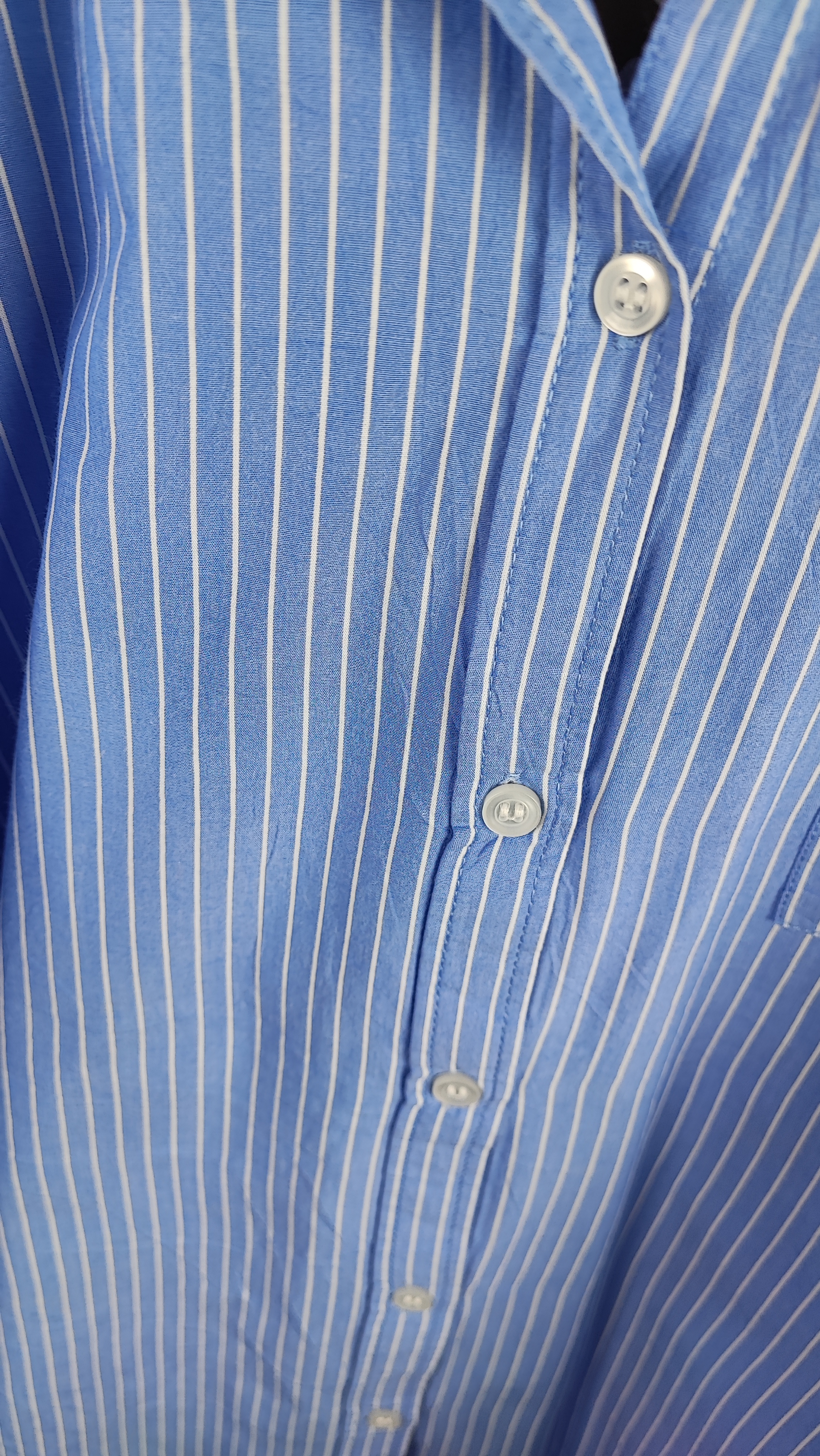 این شومیز از پارچه نخی بسیار باکیفیت و تنفسپذیر تهیه شده که انتخابی عالی برای استفاده روزمره، محیط کار و دورهمیهای دوستانه است. طرح راهراه عمودی سفید و آبی نه تنها هیچوقت از مد نمیافتد، بلکه با ایجاد خطای دید، اندام شما را کشیدهتر و متناسبتر نشان میدهد.