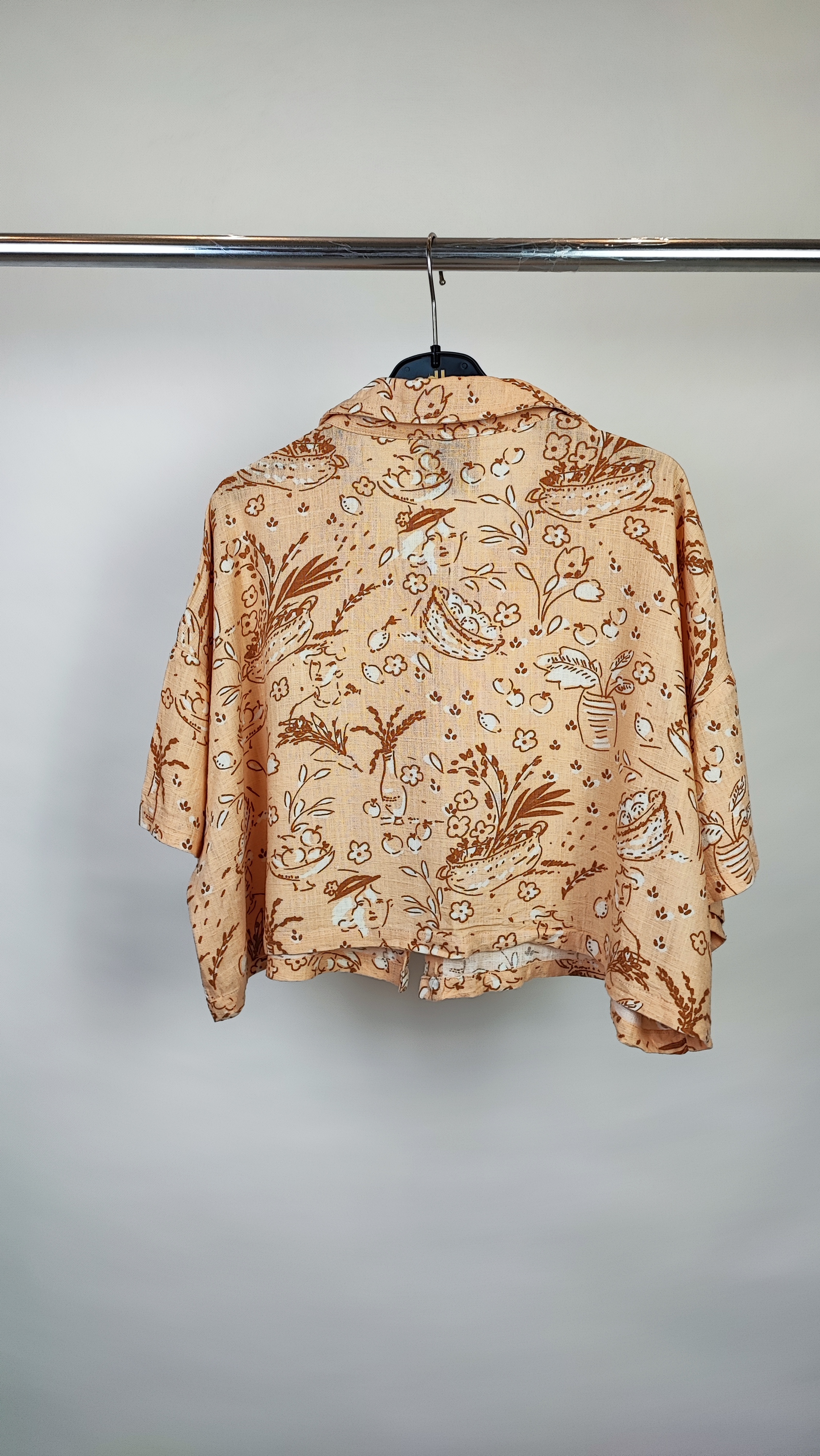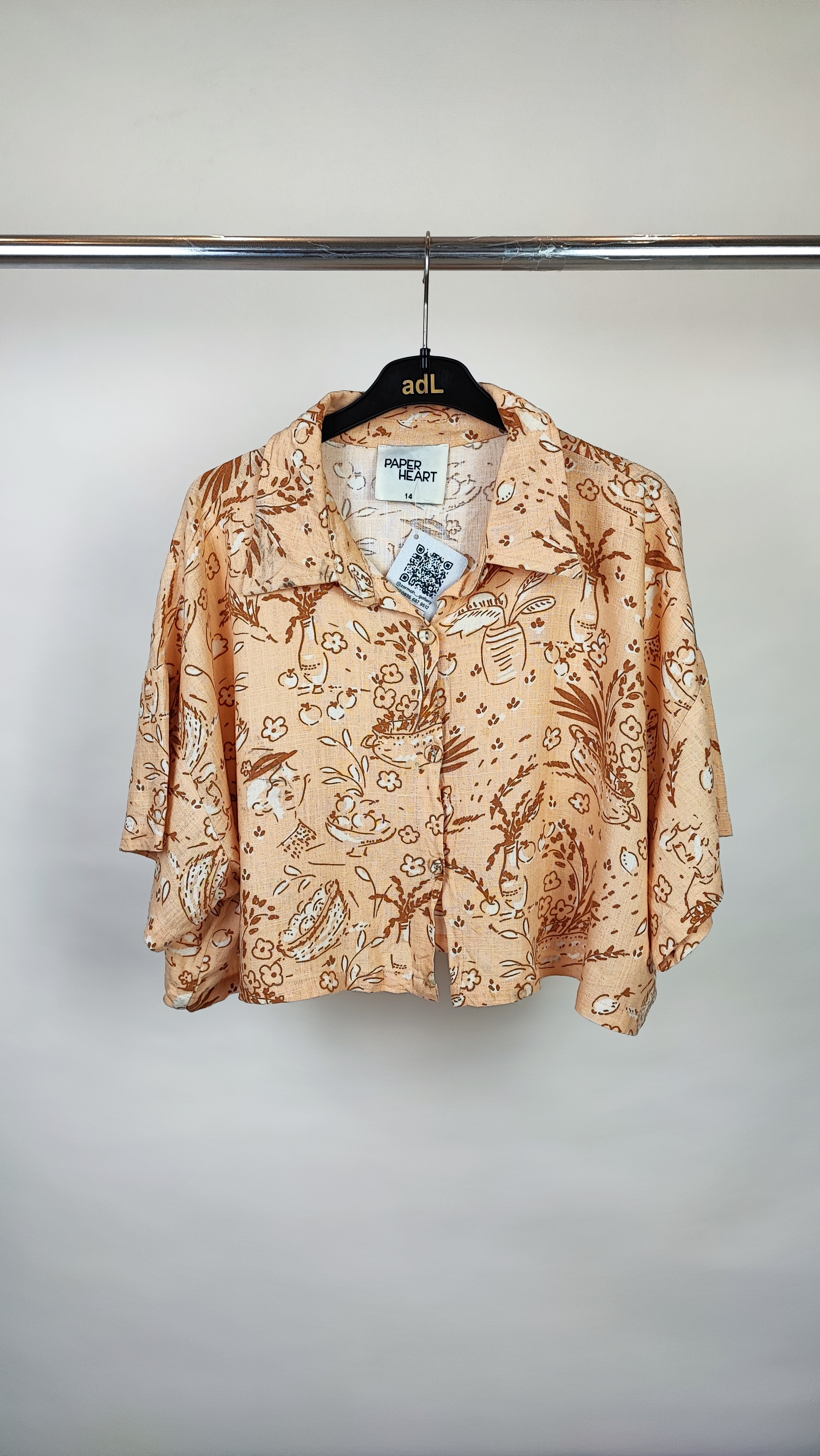 نیم‌تنه زنانه اروپایی کد ۱۲۲۹(ایراددار.لکه خاک داره ) | رنگ هلویی روشن با طرح لطیف و فیت راحت