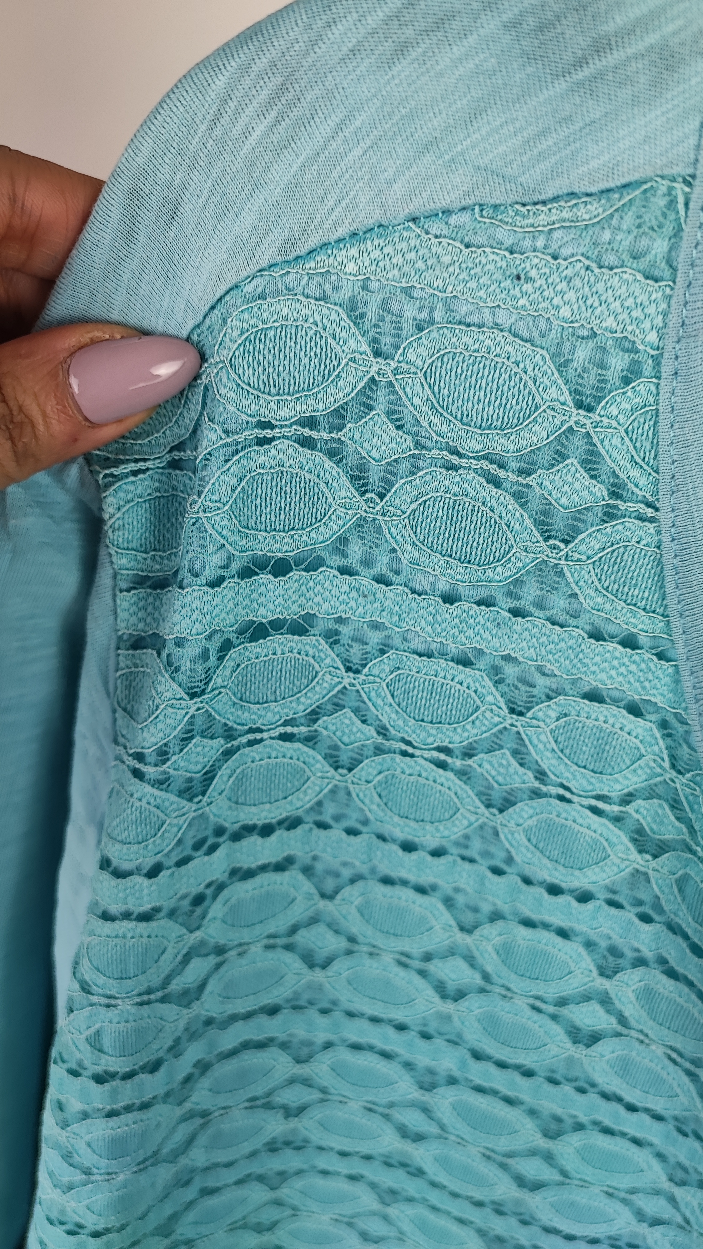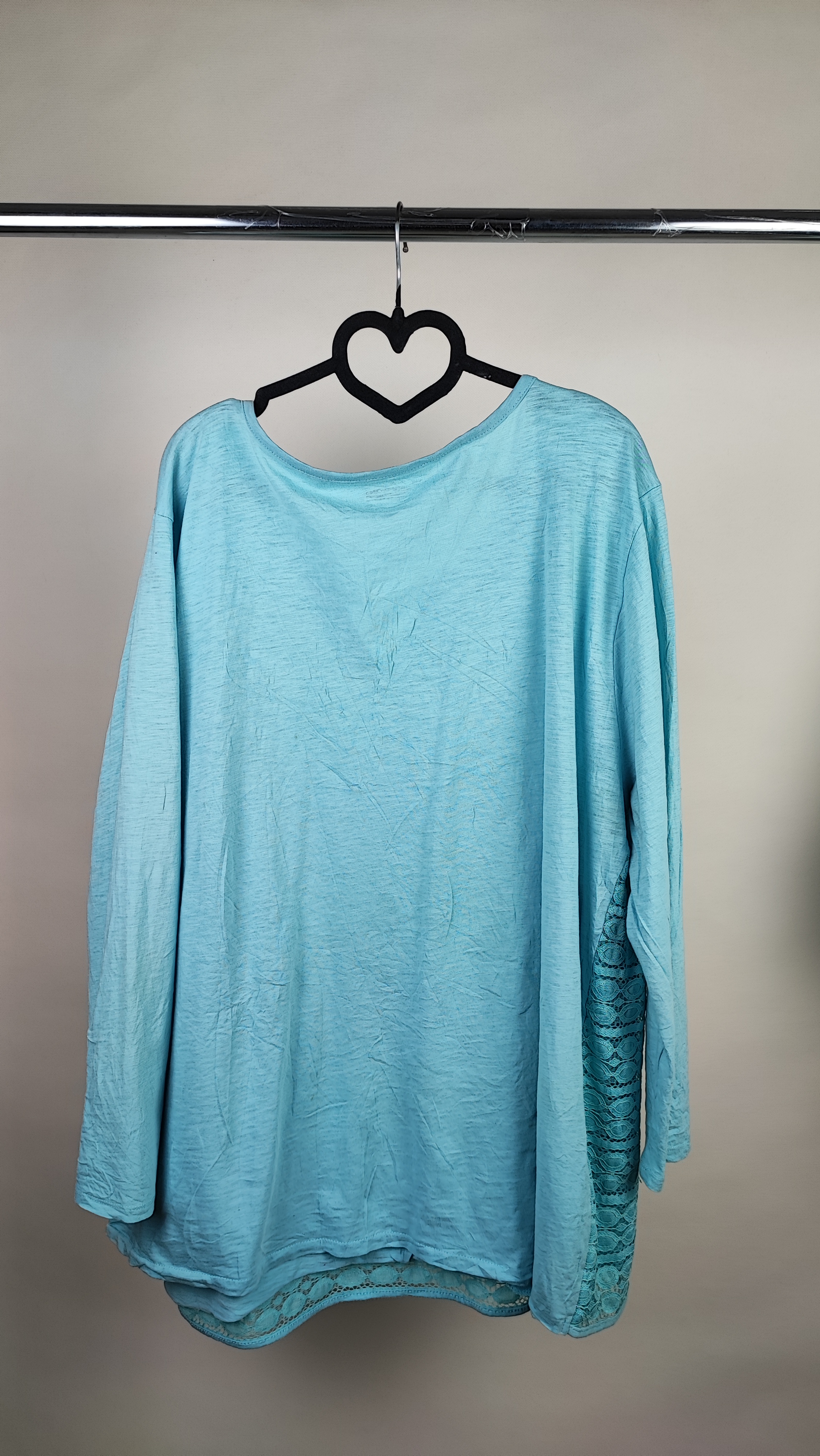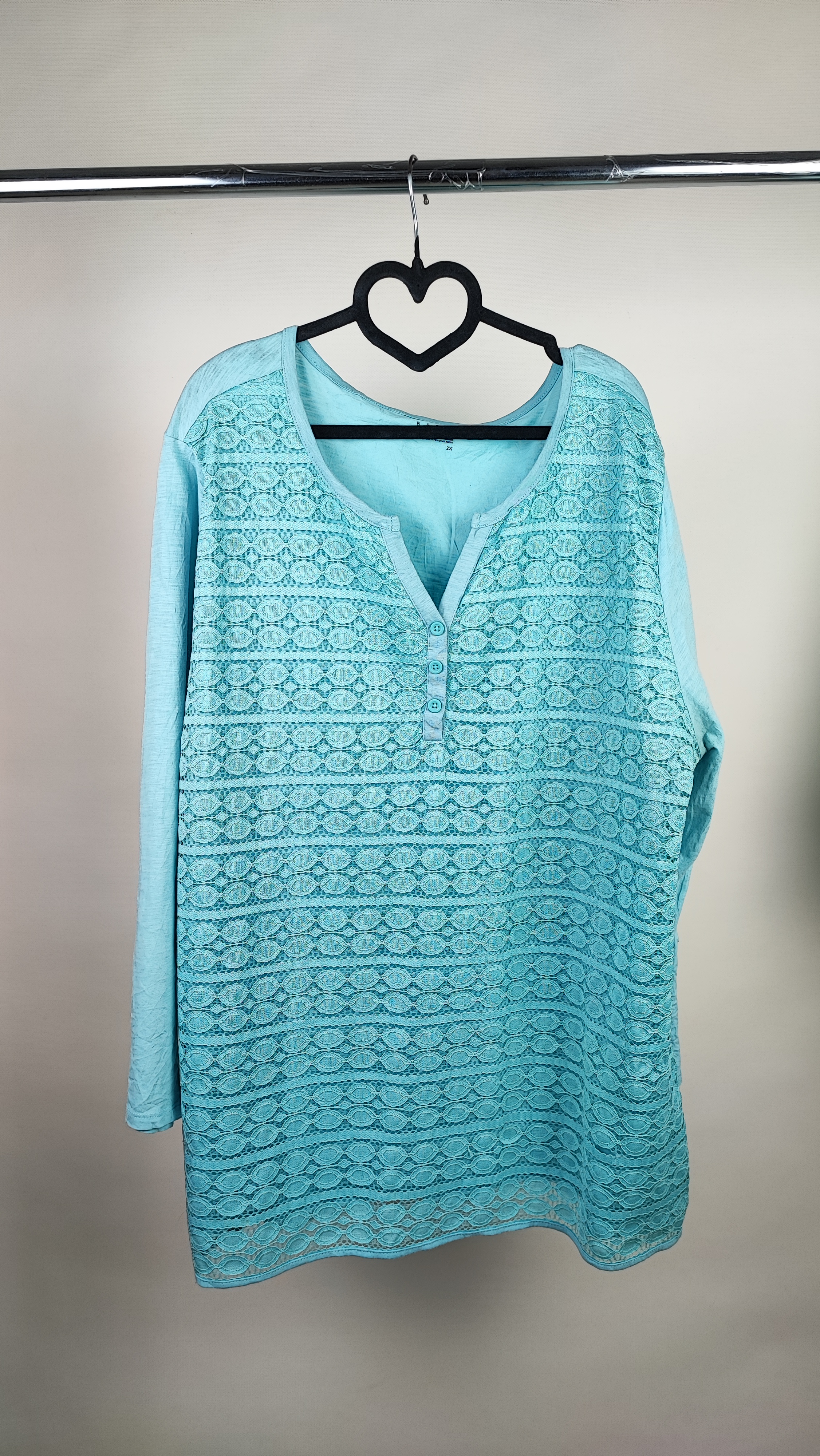 شومیز زنانه وارداتی استوک کد ۲۰۸۵ مناسب سایز ۵۲ و ۵۴ | شومیز بلند گیپوردار رنگ آبی فیروزهای