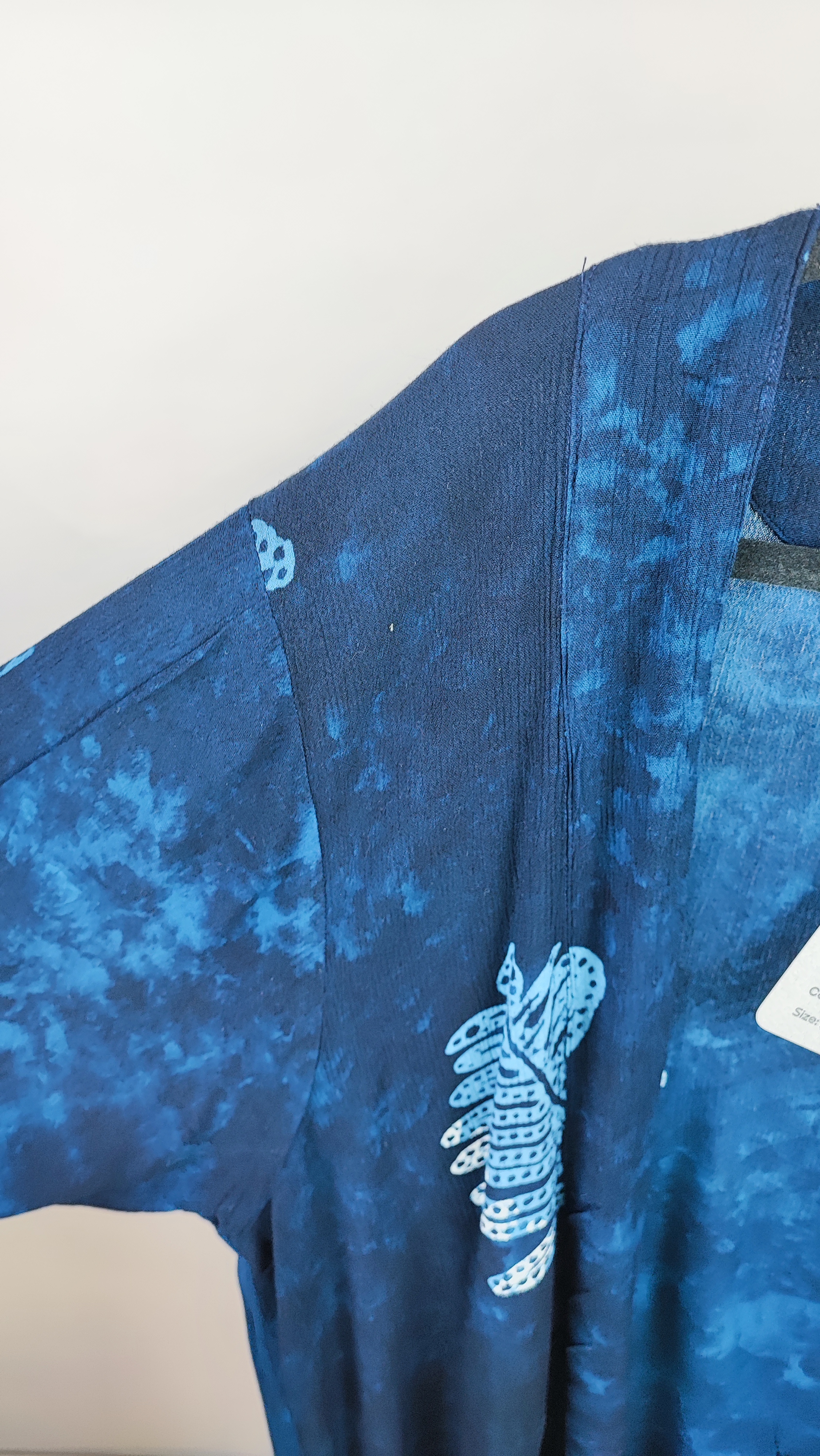 این محصول از سری استوکهای گرید A میباشد که بسیار تمیز و در حد نو است. طراحی زیبا با طرح برگهای آبی، استایلی شیک و کژوال به شما میدهد که به راحتی با شلوار جین یا کتان ست میشود. با خرید این رویه، صاحب یک لباس برند با کیفیت بسیار بالا و قیمتی بیرقیب میشوید.