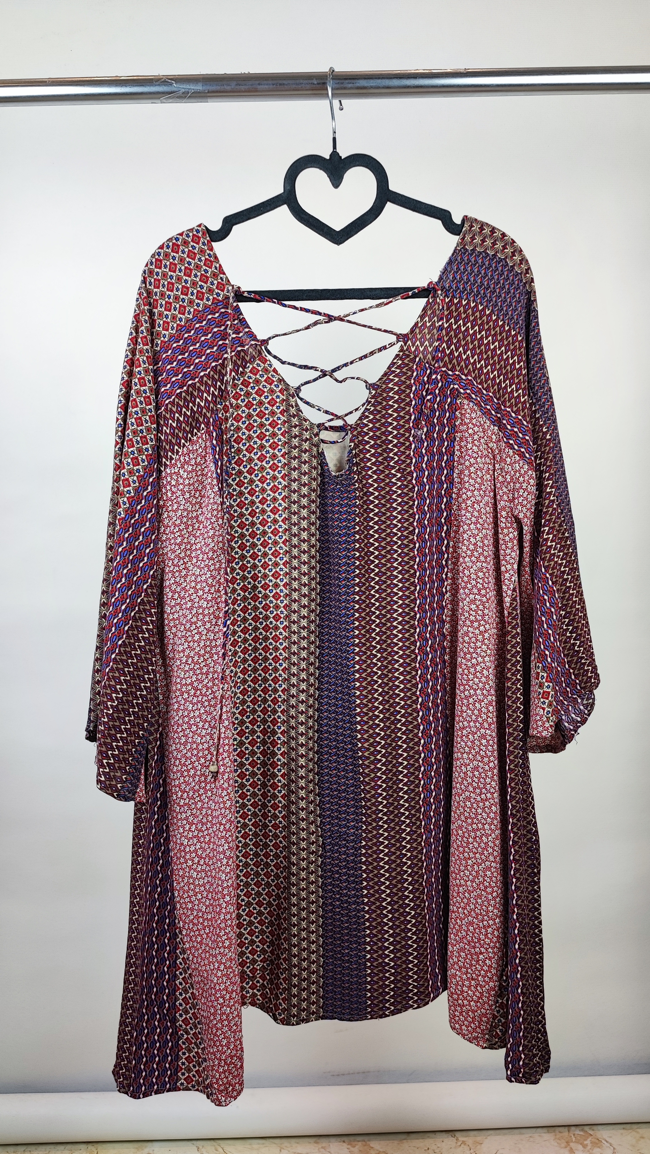 اگر به دنبال یک استایل متفاوت و هنری هستید، این شومیز بلند از برند معروف easel دقیقاً همان چیزی است که نیاز دارید. پارچه این کار از ۱۰۰٪ (Rayon) تهیه شده که ریزش فوقالعادهای دارد و روی اندام بسیار لخت و زیبا میایستد. ویژگی منحصربهفرد این محصول، طراحی بندهای ضربدری در قسمت پشت یقه است که استایل شما را از سادگی درآورده و جلوهای خاص به آن میبخشد.