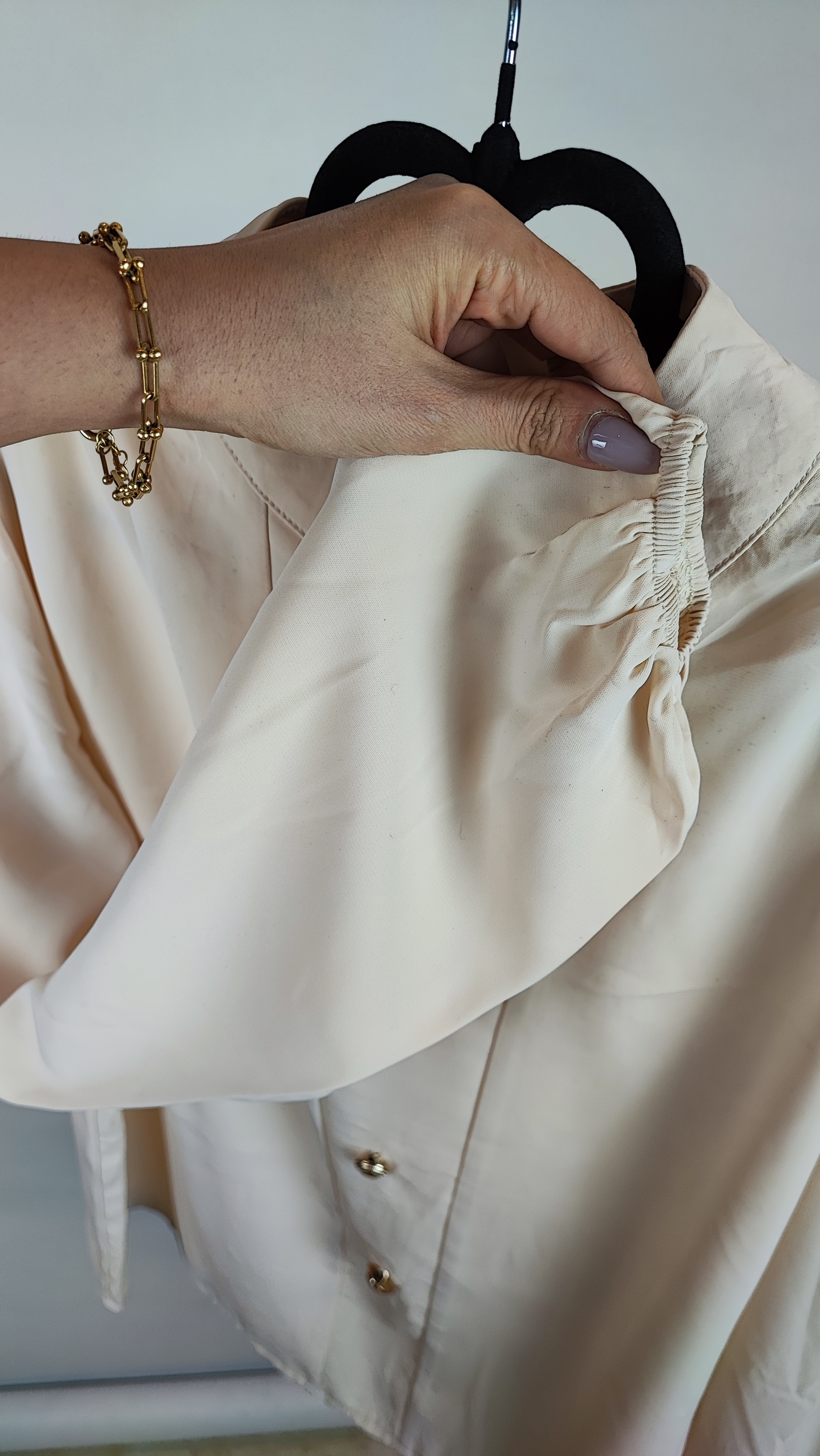 شومیز مجلسی زنانه استوک وارداتی برند SHEIN کد ۱۴۲۴ سایز ۴۰.۴۲ | رنگ کرم با دکمههای طلایی خاص