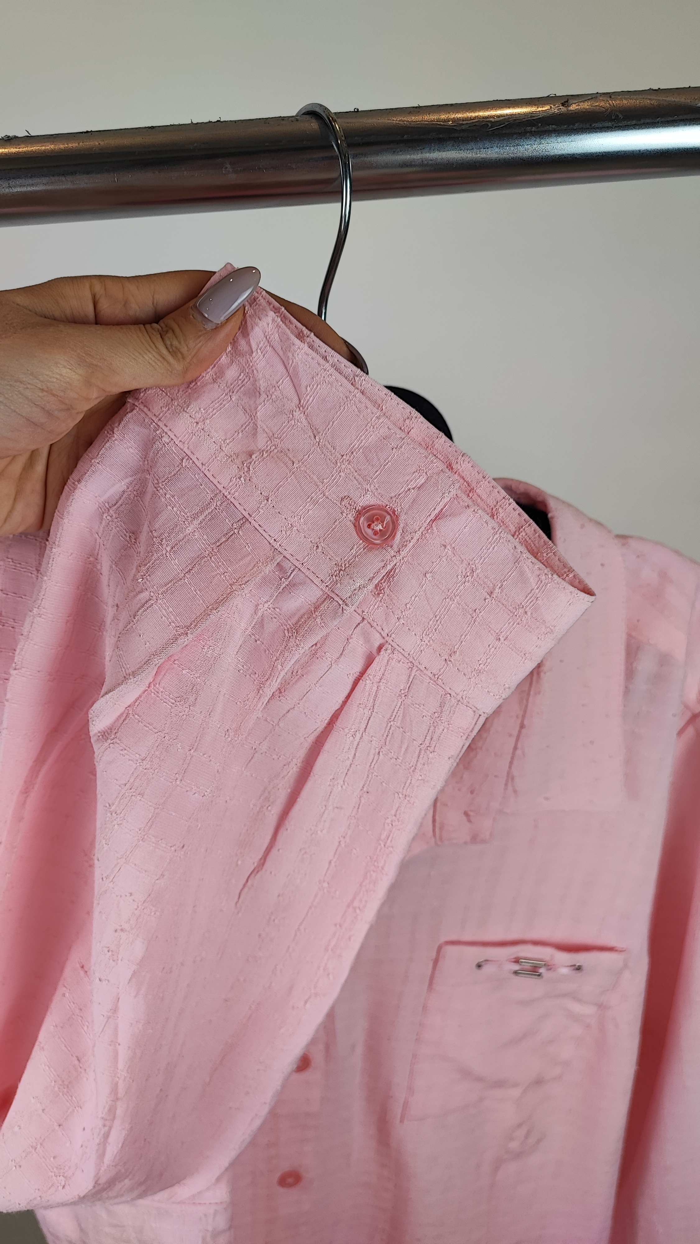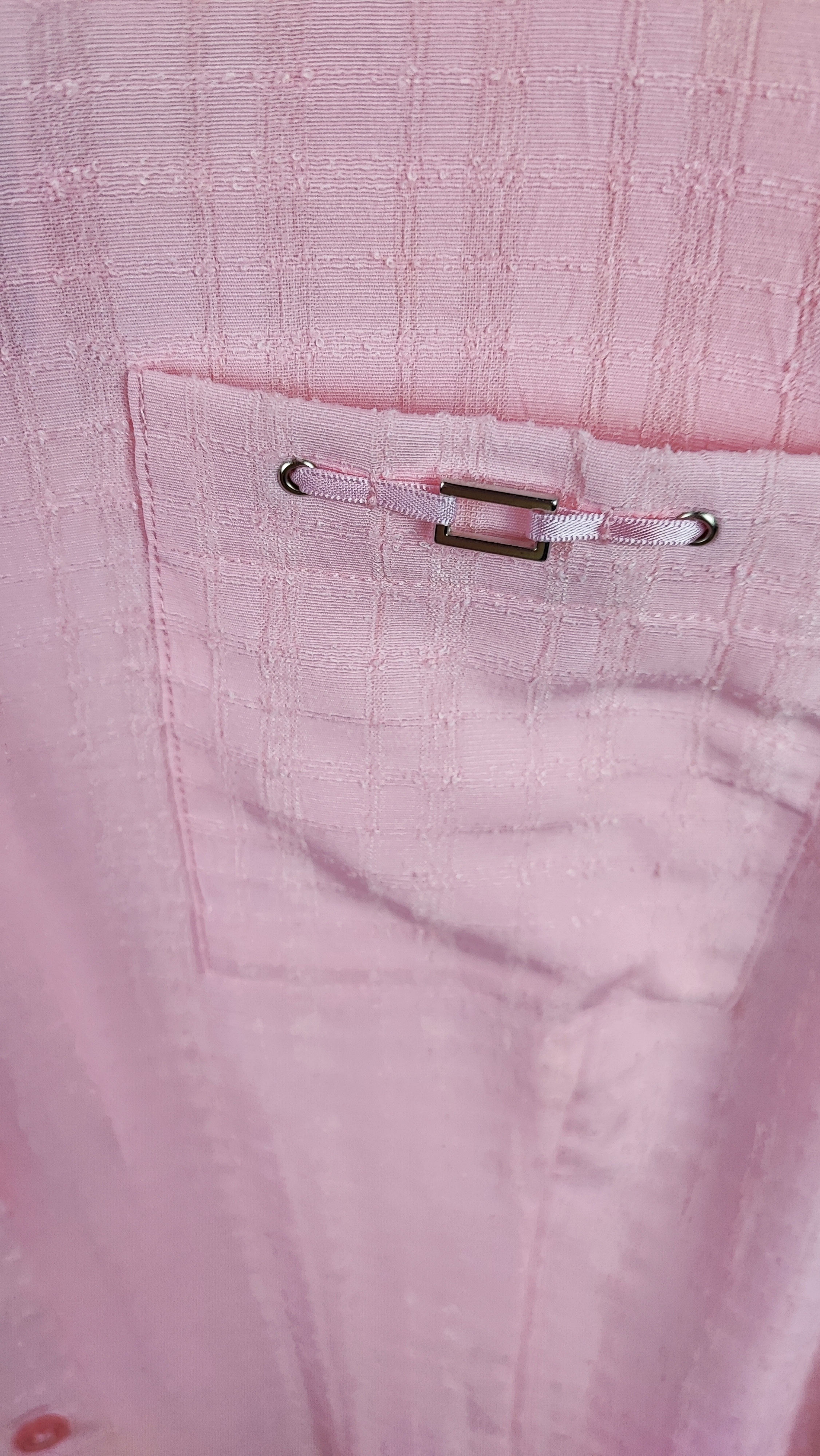 طراحی این شومیز شامل دو جیب کاربردی در جلو و آستینهایی با قد استاندارد است که به راحتی قابل ست شدن با شلوارهای کتان تیره یا جین میباشد. پارچه این کار از ترکیب پنبه باکیفیت است که تنفسپذیری بالایی دارد و برای استفاده طولانیمدت در روز بسیار راحت است.