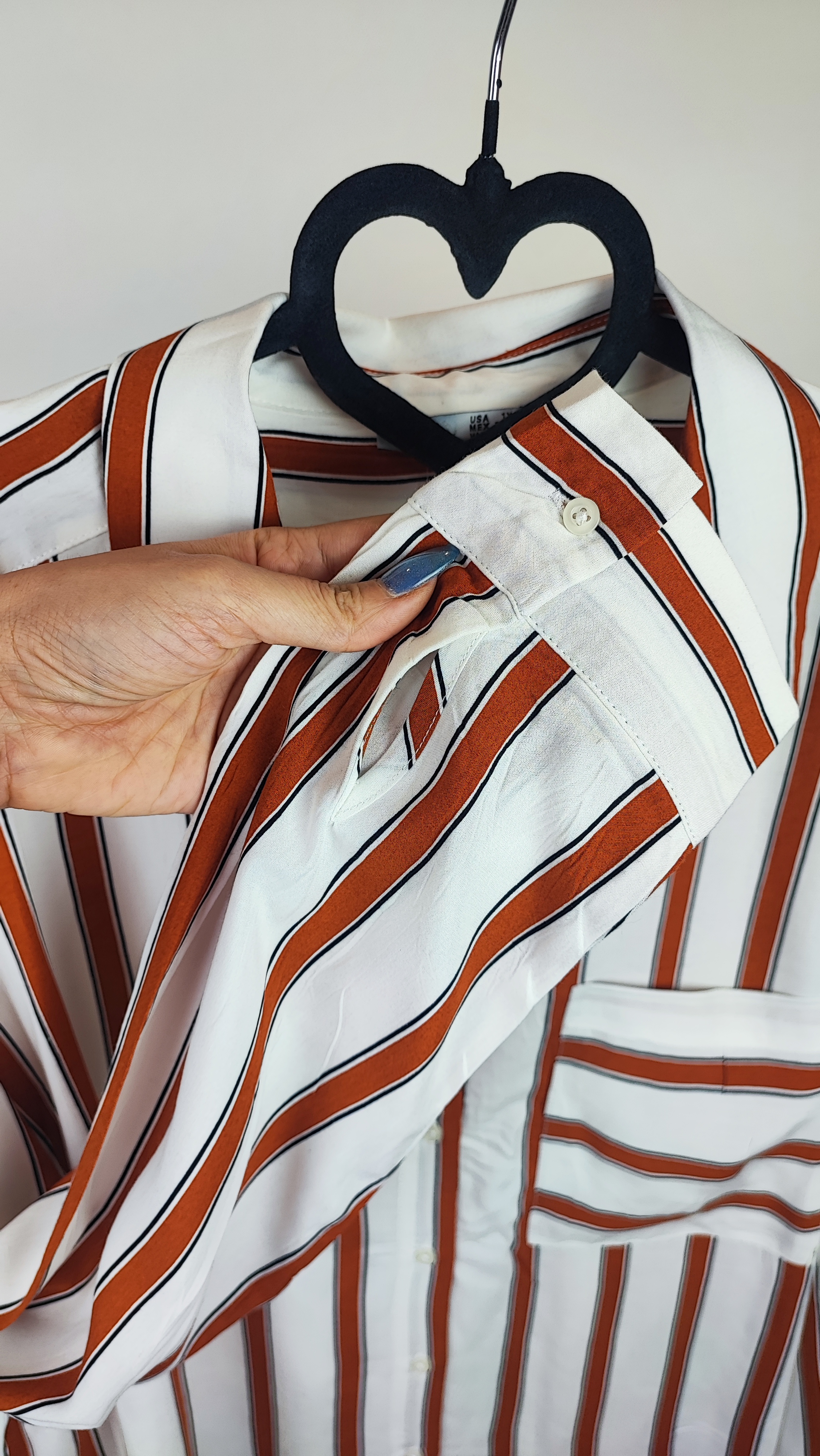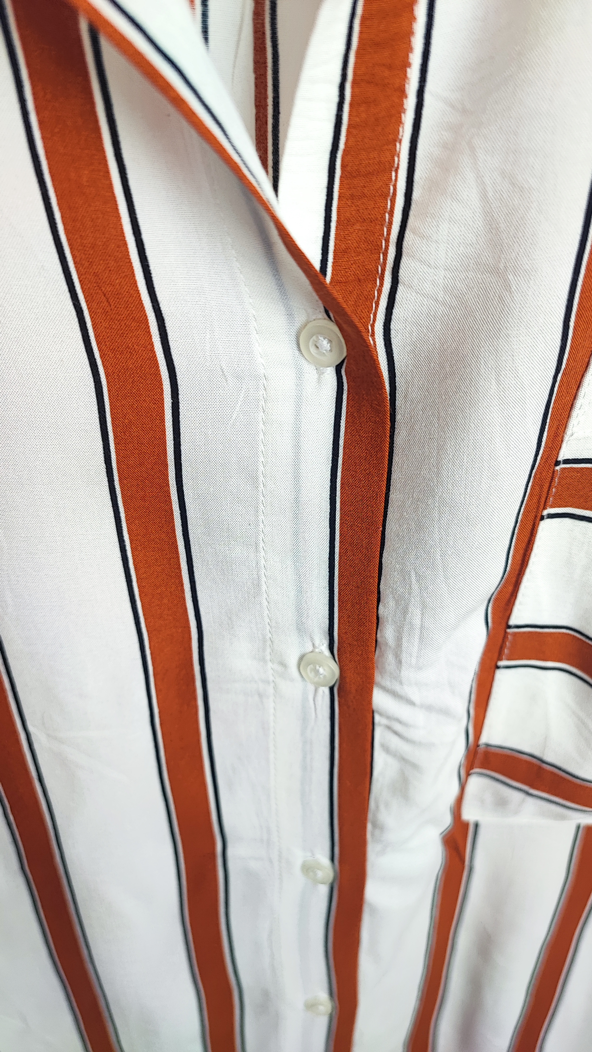 طراحی راه راه عمودی و کلاسیک این شومیز، اندام را کشیدهتر نشان میدهد و برای استایلهای نیمهرسمی و دورهمیها بسیار شیک است.