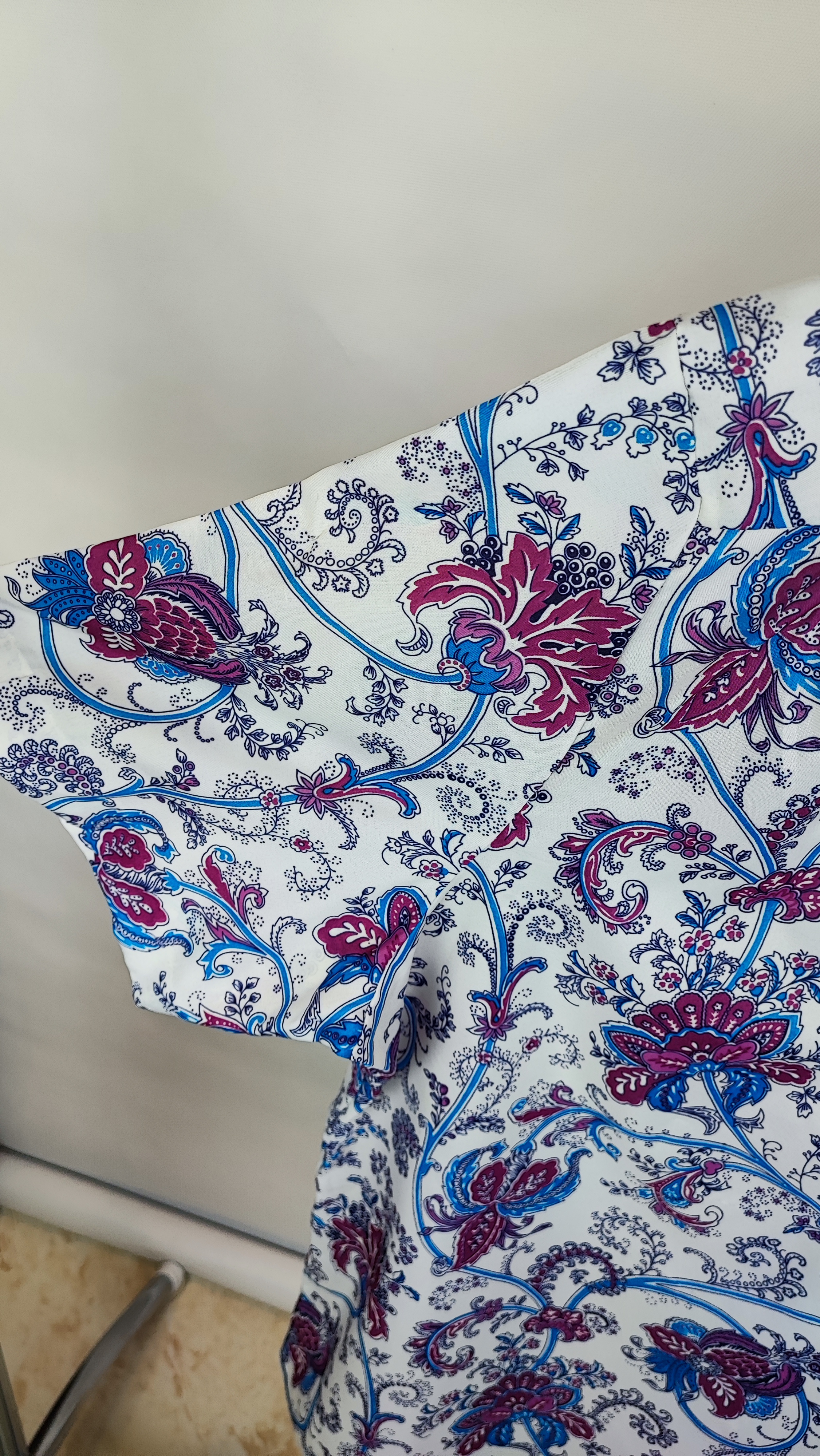 این محصول در رده استوک درجه B قرار دارد که به معنای کیفیت ساخت بالا و قیمت بسیار اقتصادی نسبت به نمونههای نو است. طرح گلهای اسلیمی با ترکیب رنگی بنفش و فیروزهای، جلوهای شاد و در عین حال باوقار به استایل شما میدهد. آستینهای کوتاه و یقه شکاری این کار، آن را برای فصلهای گرم سال و استفاده زیر کت یا به تنهایی، بسیار کاربردی کرده است. با خرید این شومیز، کیفیت برند اروپایی را با قیمتی باورنکردنی به کمد لباس خود اضافه کنید.