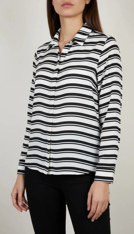 شومیز زنانه طرح راه‌راه مشکی و سفید استوک کد ۱۰۷۸ | سبک و جذاب سایز ۳۶ تا ۳۸