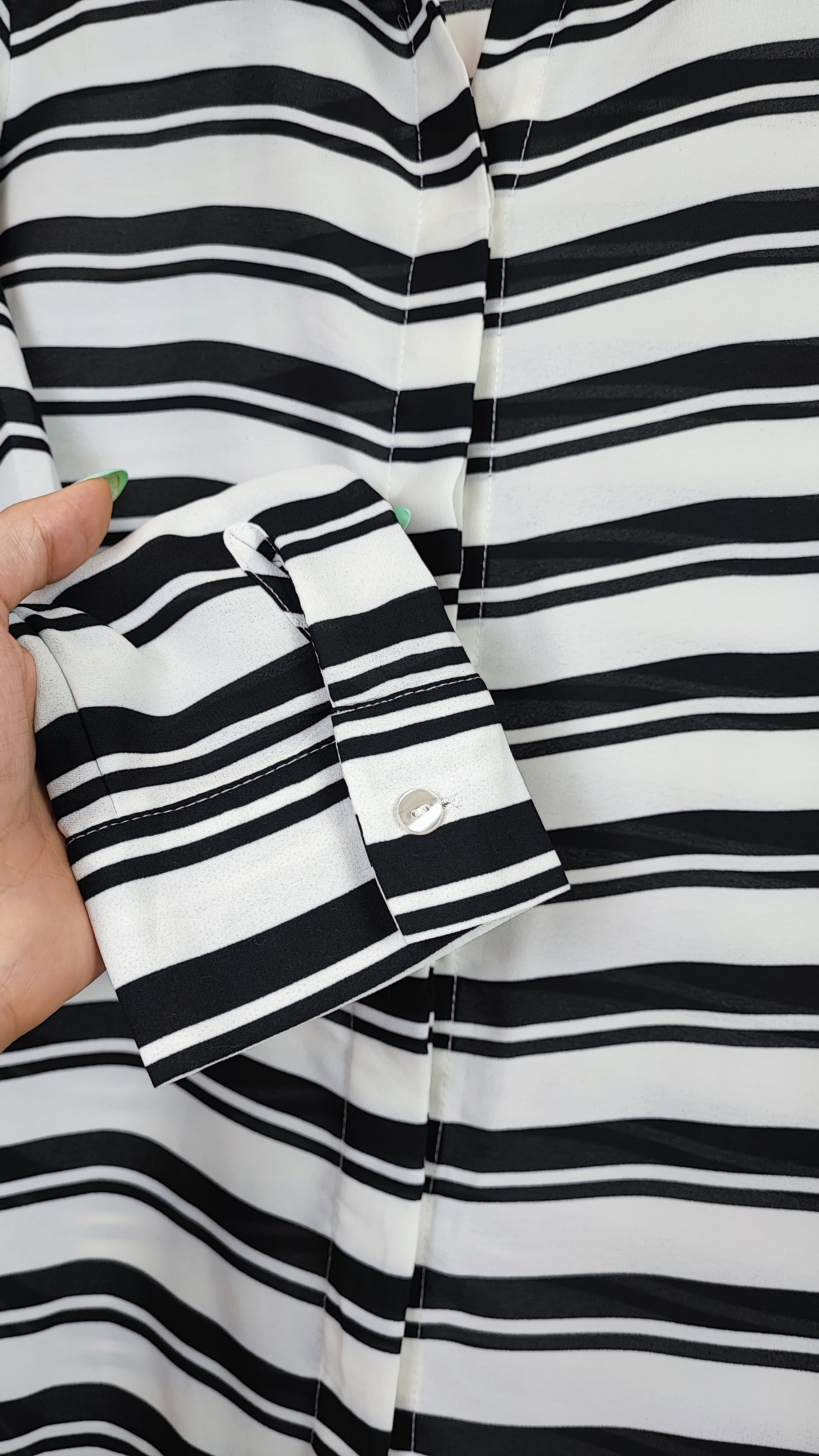 شومیز زنانه طرح راه‌راه مشکی و سفید استوک کد ۱۰۷۸ | سبک و جذاب سایز ۳۶ تا ۳۸
