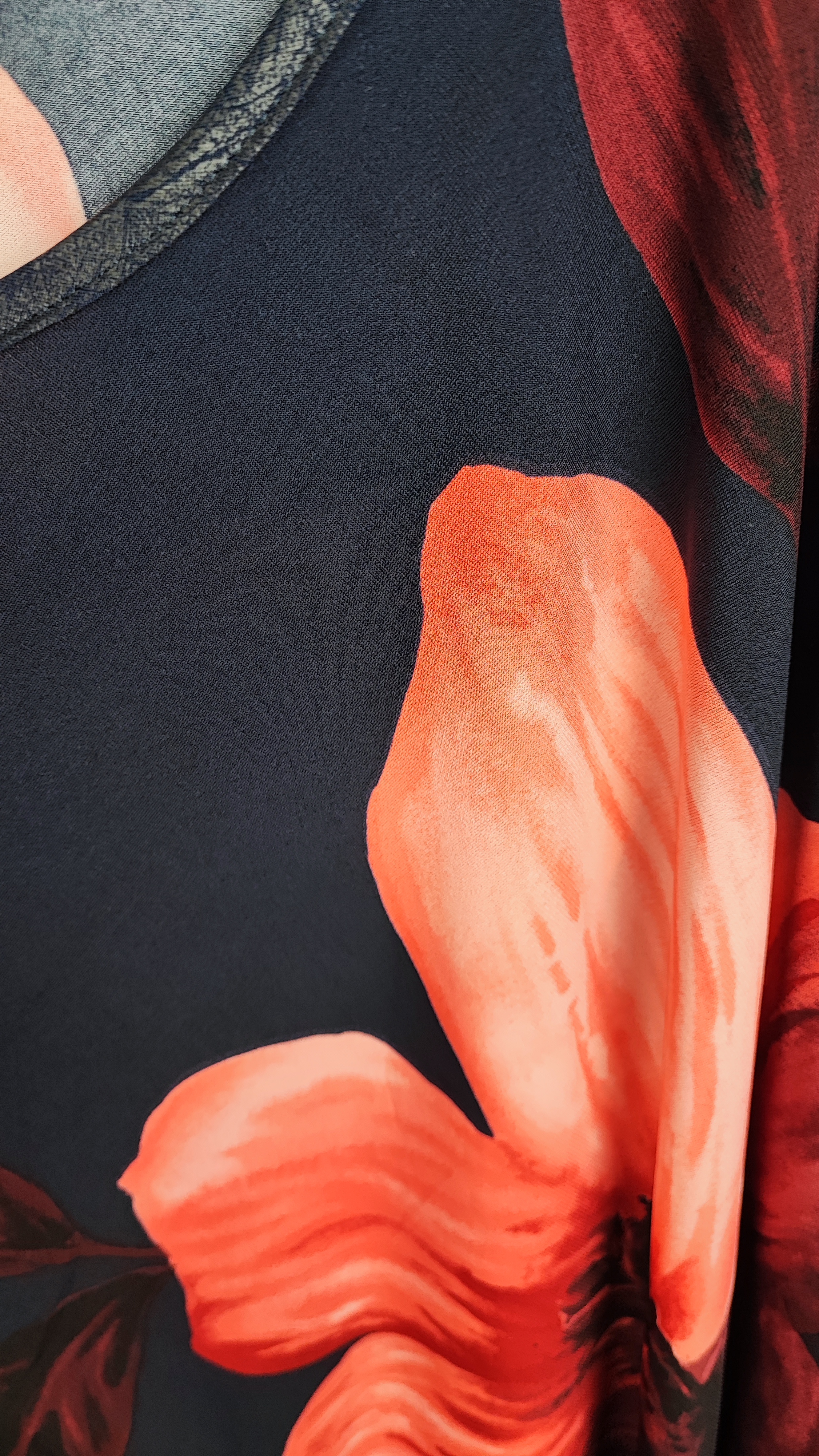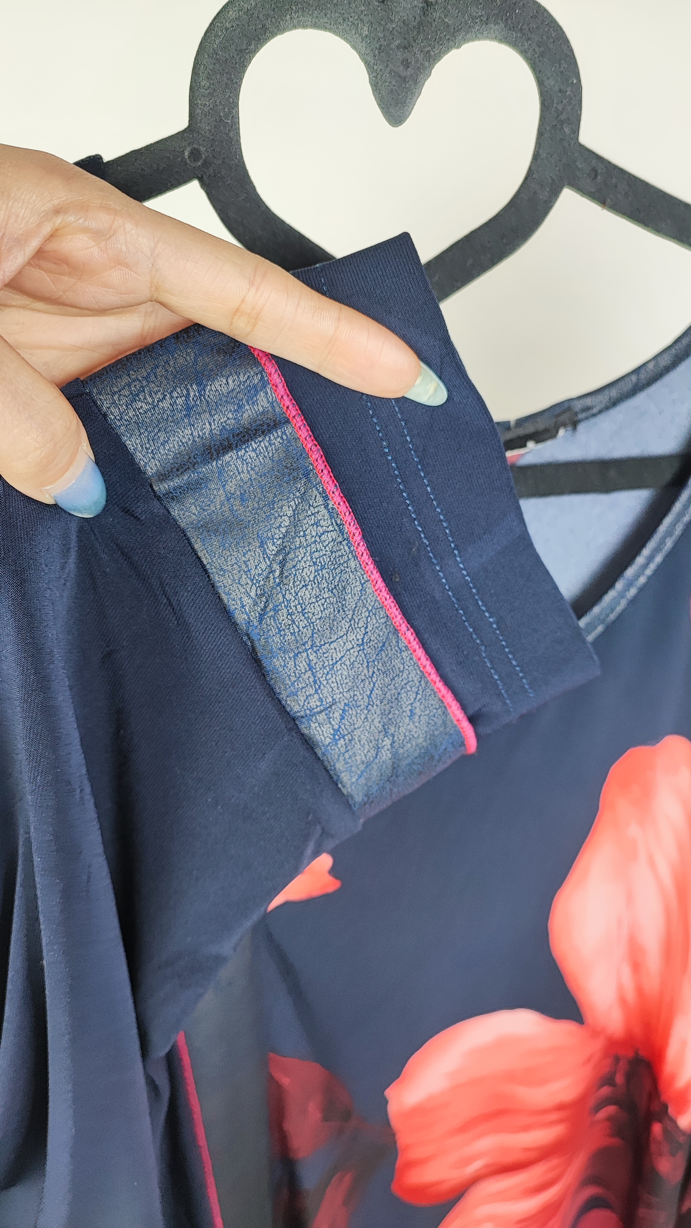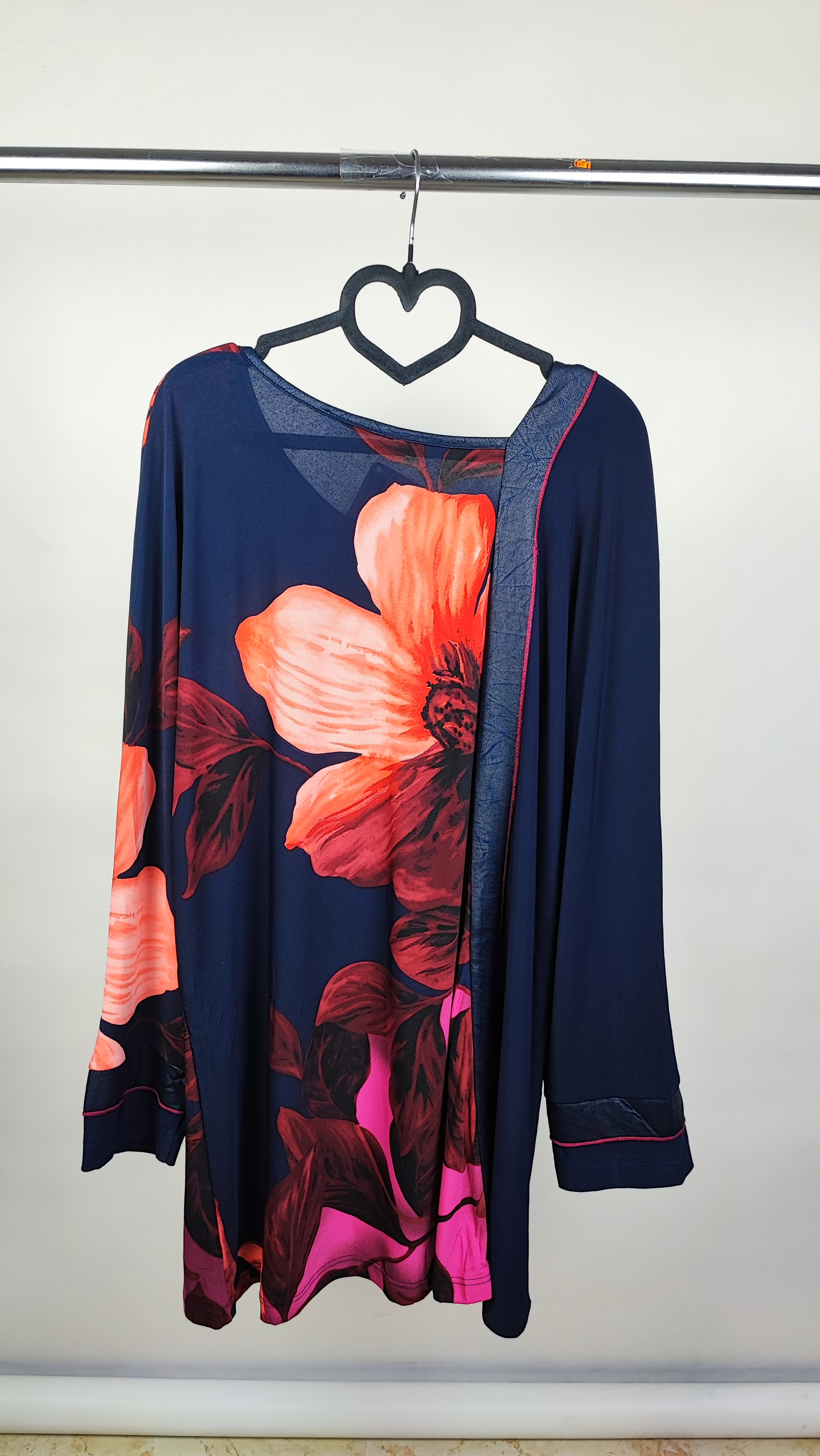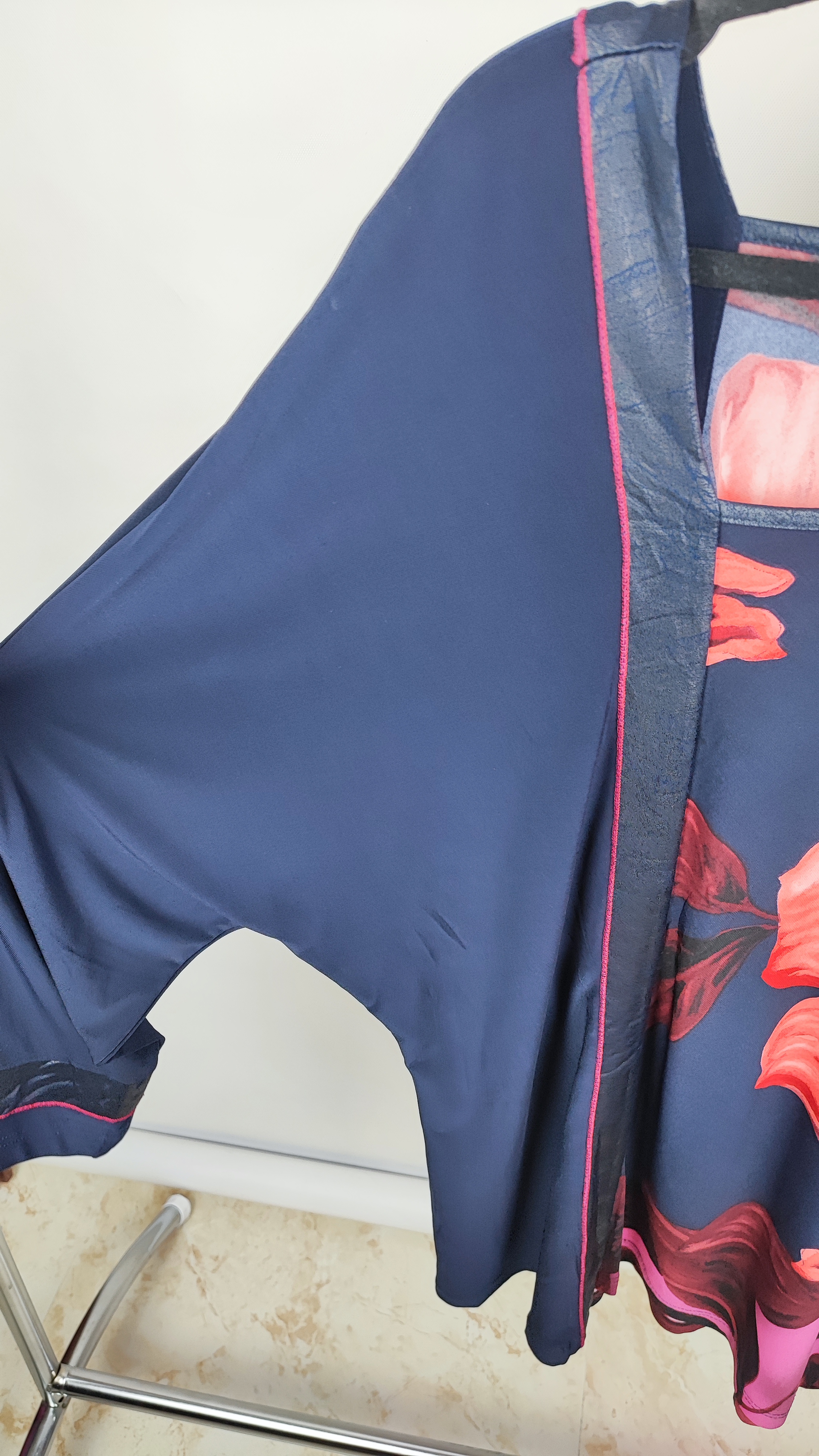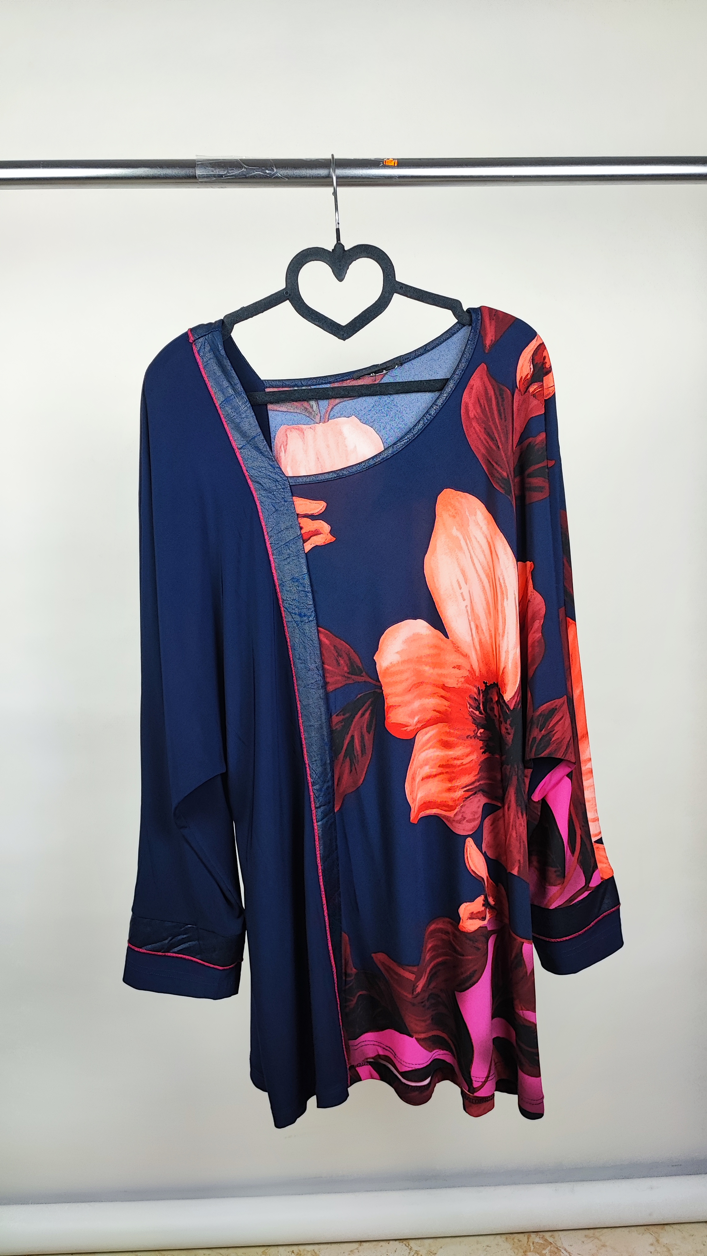 اگر به دنبال یک شومیز مجلسی و راحت با سایزبزرگ هستید که تنخور عالی داشته باشد و در عین حال هزینهی زیادی بابت آن نپردازید، این مدل وارداتی بهترین گزینه برای شماست. این شومیز با کد ۲۲۷۵ از سری محصولات استوک اروپایی گرید B است که با ترکیب رنگ جذاب سرمهای و گلهای نارنجی بزرگ، استایلی منحصربهفرد به شما میبخشد.
