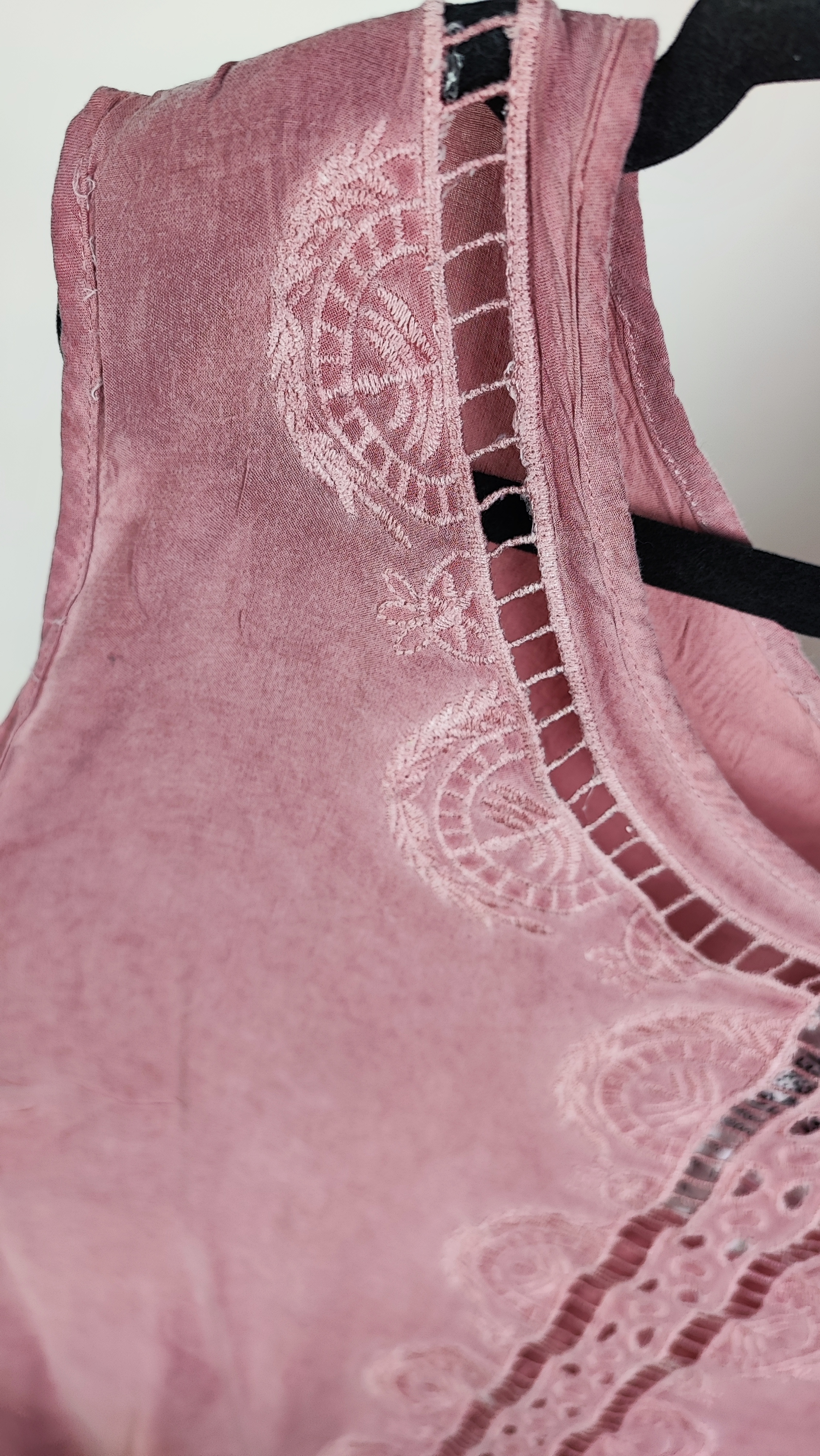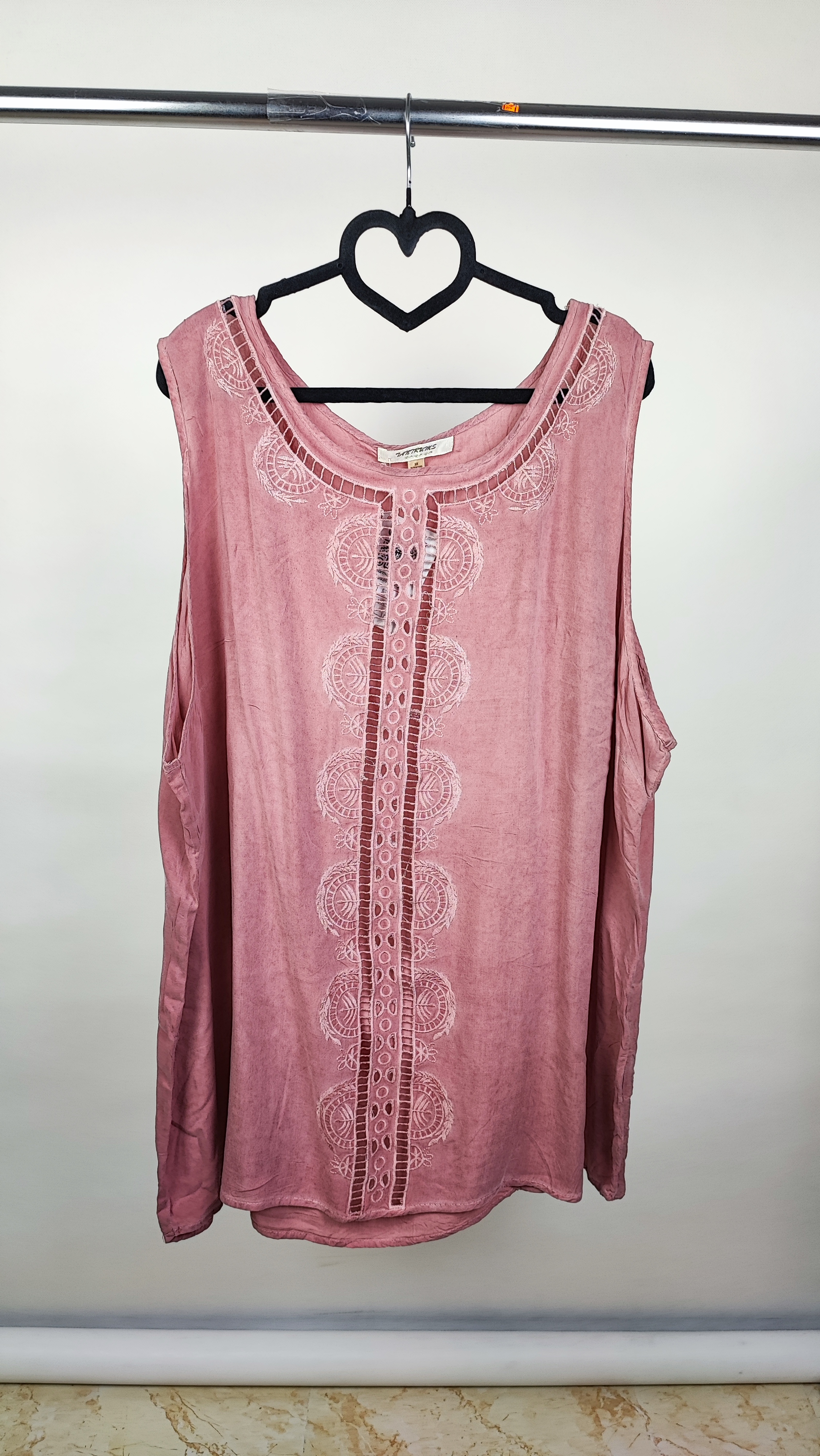 اگر به دنبال یک تاپ راحت، خنک و در عین حال شیک برای روزهای گرم هستید، این تاپ سایزبزرگ از برند وارداتی Tantrums انتخابی عالی است. جنس این کار ۱۰۰٪ ریون (نخی) است که لطافت بینظیری دارد و مانع از تعریق میشود. طراحی یقه گرد با جزئیات گلدوزی ظریف و نوار دوزیهای مشبک در جلو، استایلی نیمهرسمی و شیک به آن بخشیده که به راحتی با شلوار جین یا کتان ست میشود.
