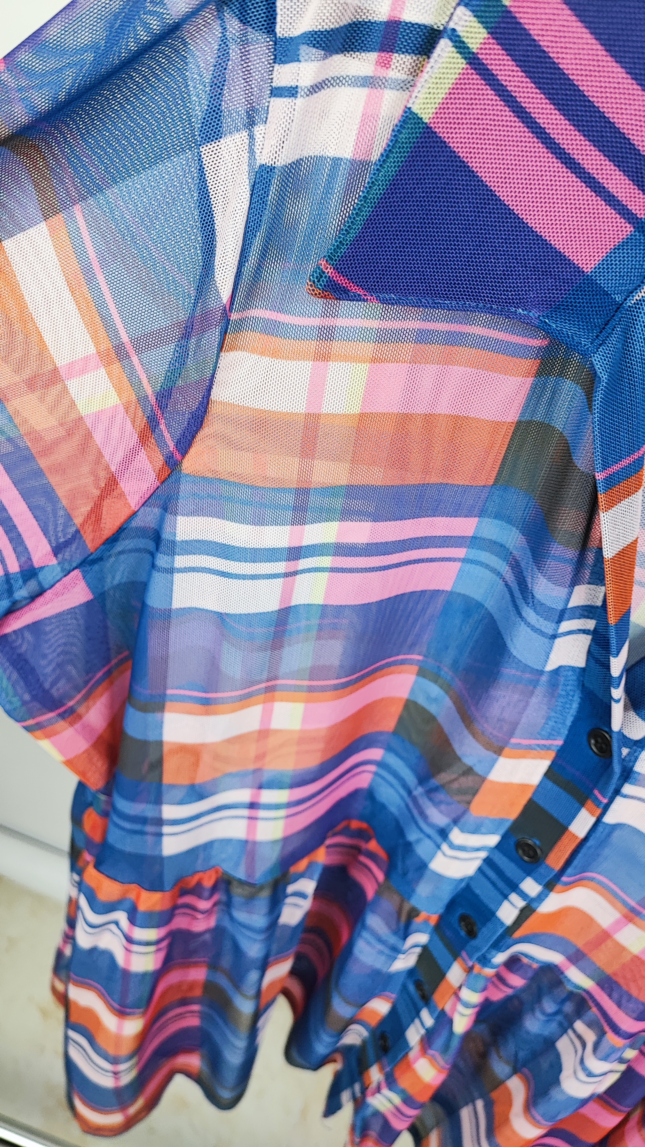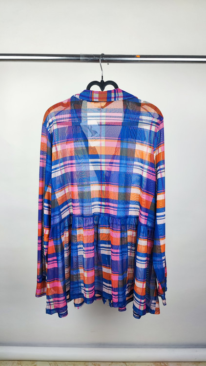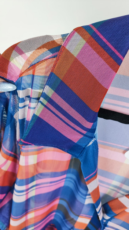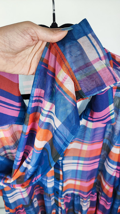 پارچه توری این شومیز با الهام از طرحهای کلاسیک چهارخانه و ترکیب رنگهای جذاب (آبی، صورتی، نارنجی)، علاوه بر خنکی فوقالعاده، استایلی مدرن و شاداب به شما میبخشد. برش هوشمندانه و مدل کلوشِ ملایم پایین لباس، به زیبایی روی اندام سایزبزرگ مینشیند و ضمن راحتی کامل، نقصهای بدن را میپوشاند. این کار دارای کمی کشسانی است که راحتی حرکت شما را تضمین میکند. شما صاحب یک برند معتبر با قیمتی کاملاً اقتصادی میشوید که در هر جمعی شما را متمایز نشان میدهد.